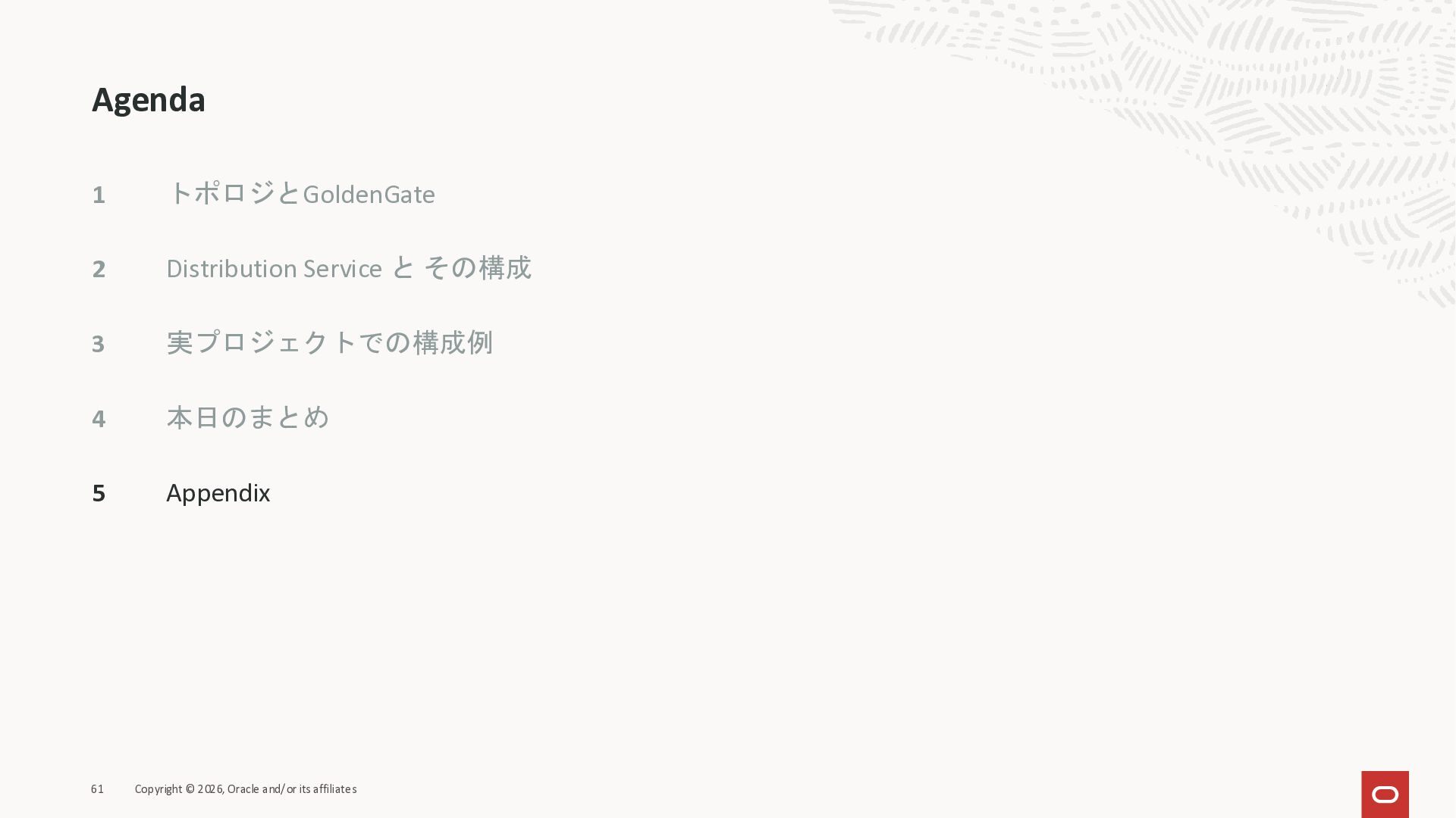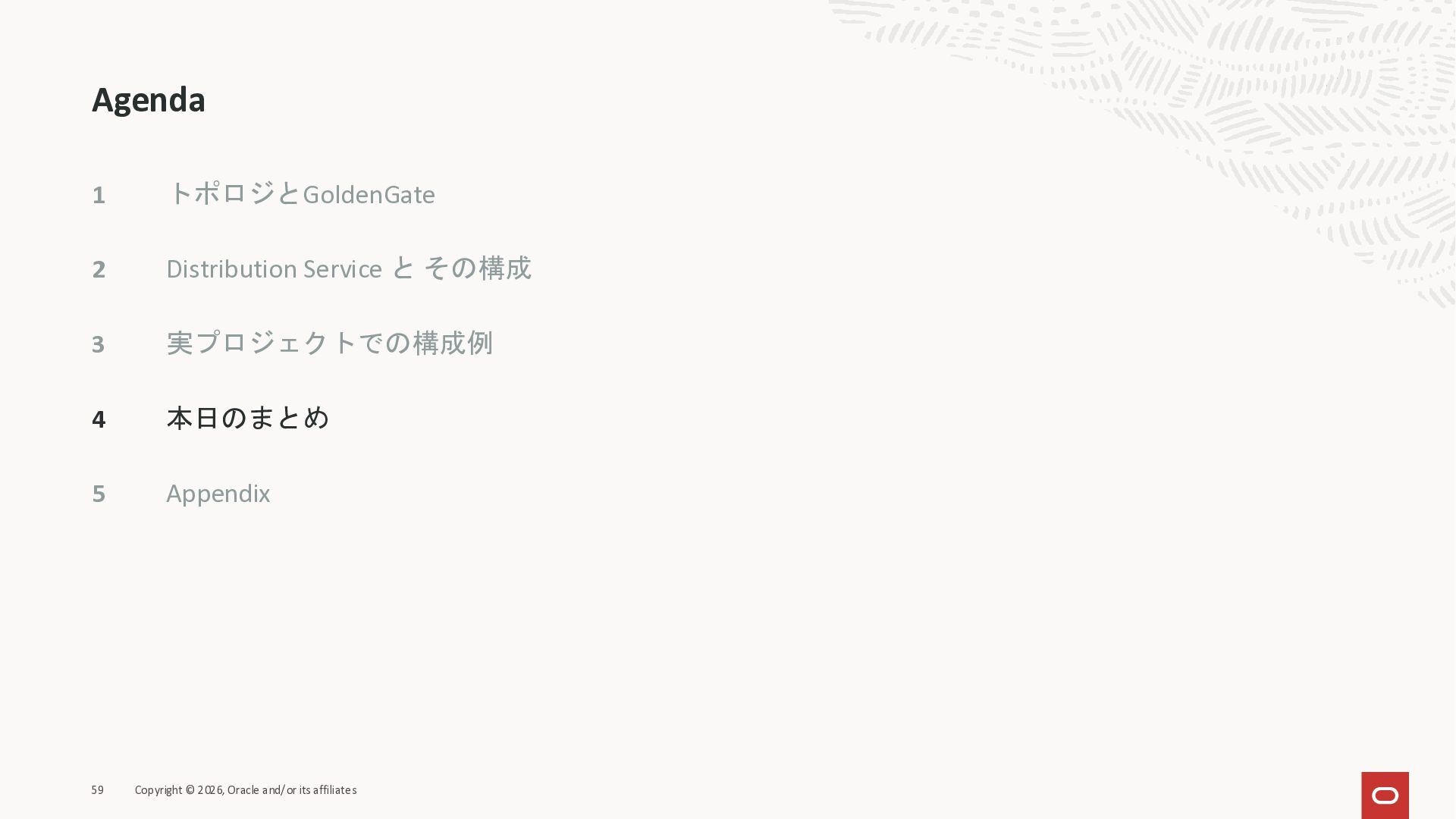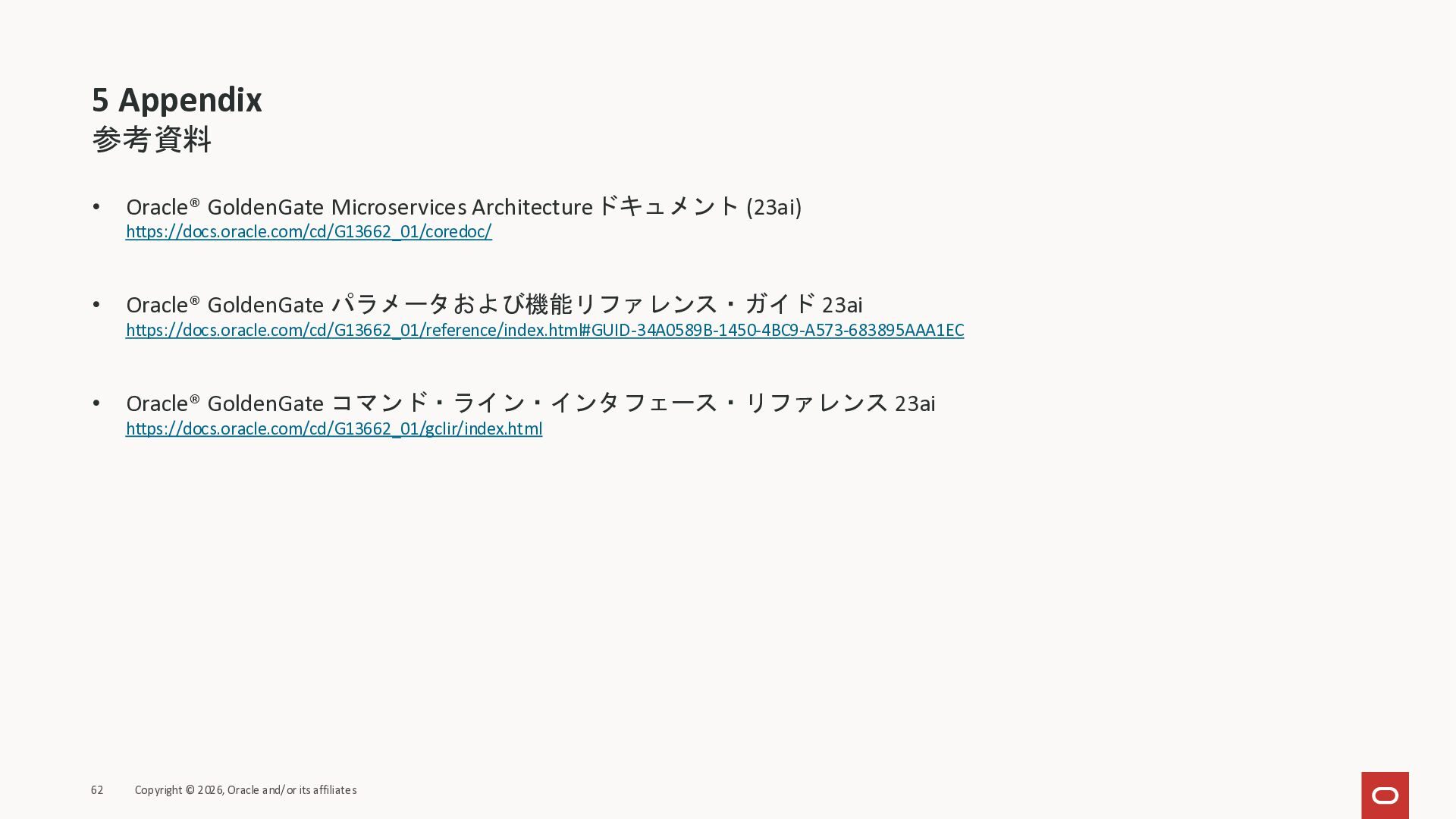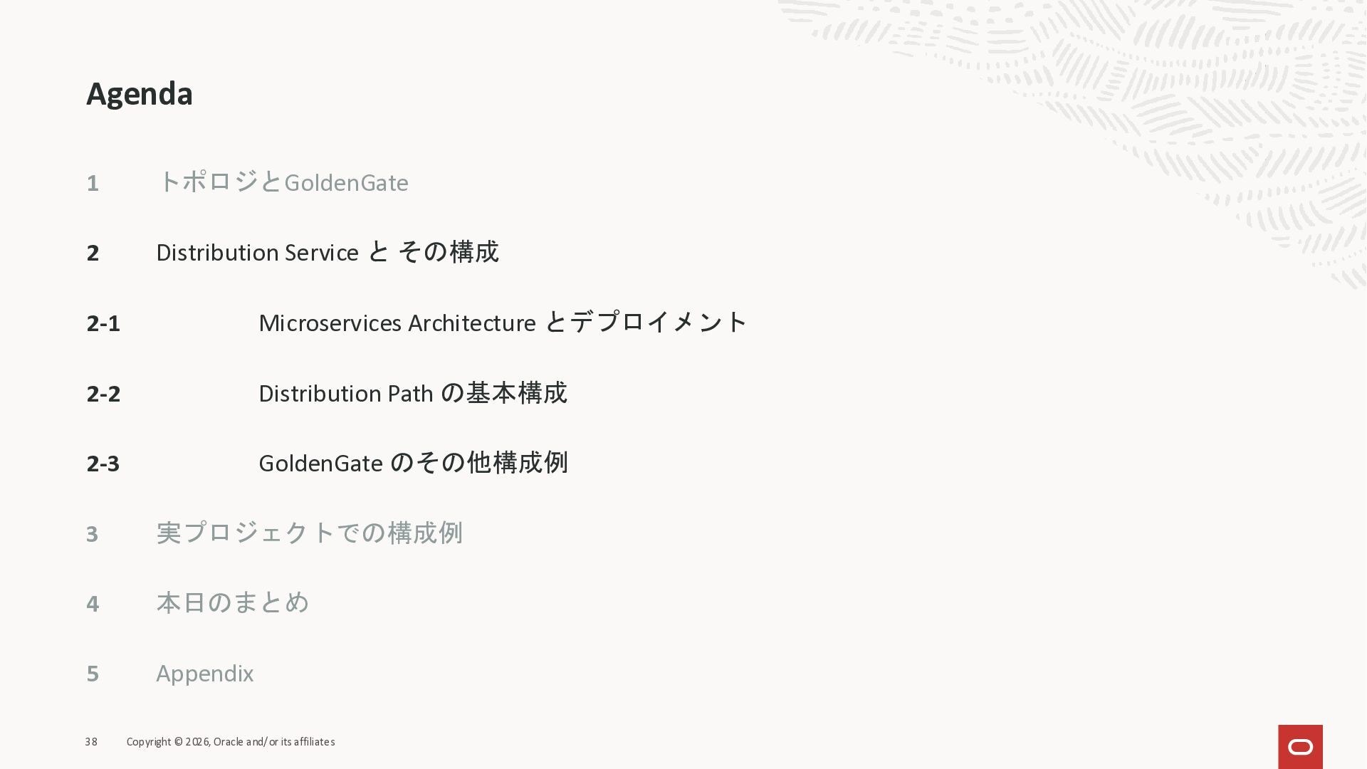 2026年3月26日に実施したOracle Database Technology Night #98 GoldenGate 26ai の実装に迫る② 〜 標準的な工程の解説と現場での実装例紹介で使用した資料です。
