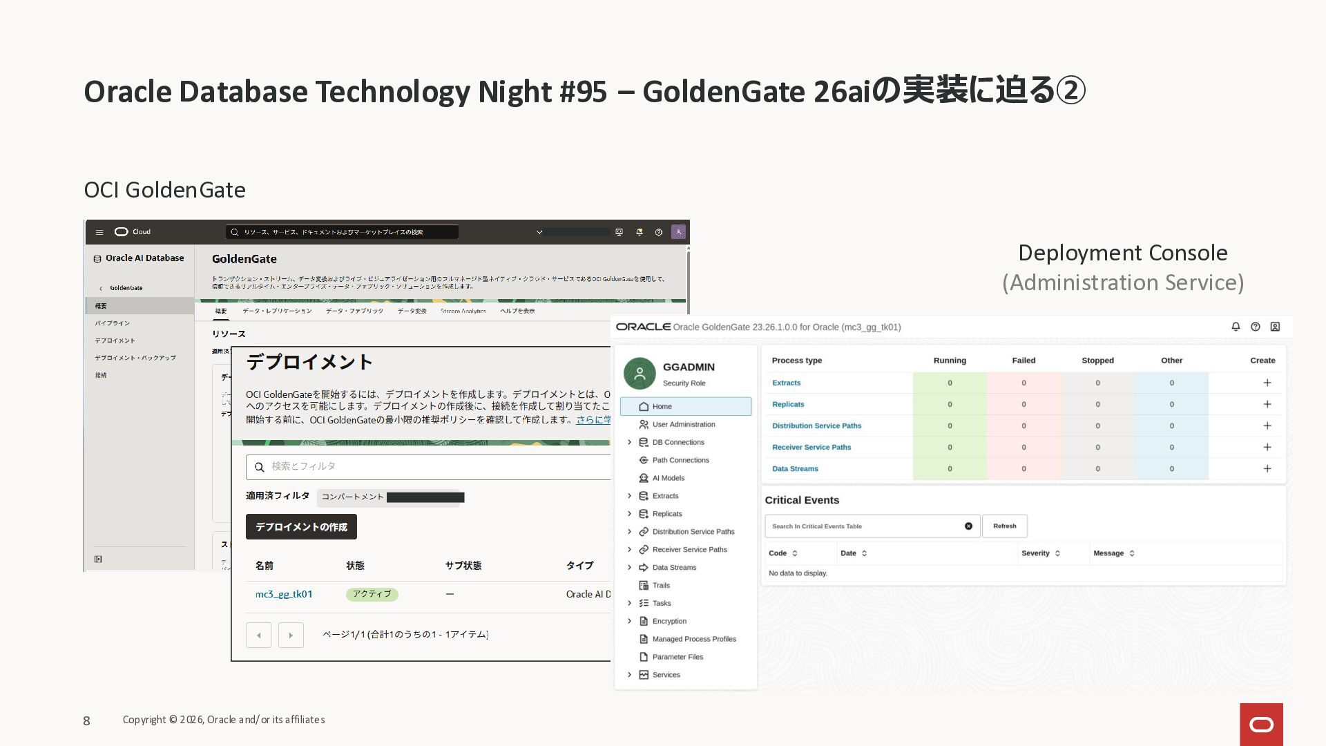 Oracle Database Technology Night#95 Oracle GoldenGate 26ai の実装に迫る1 の続編です。