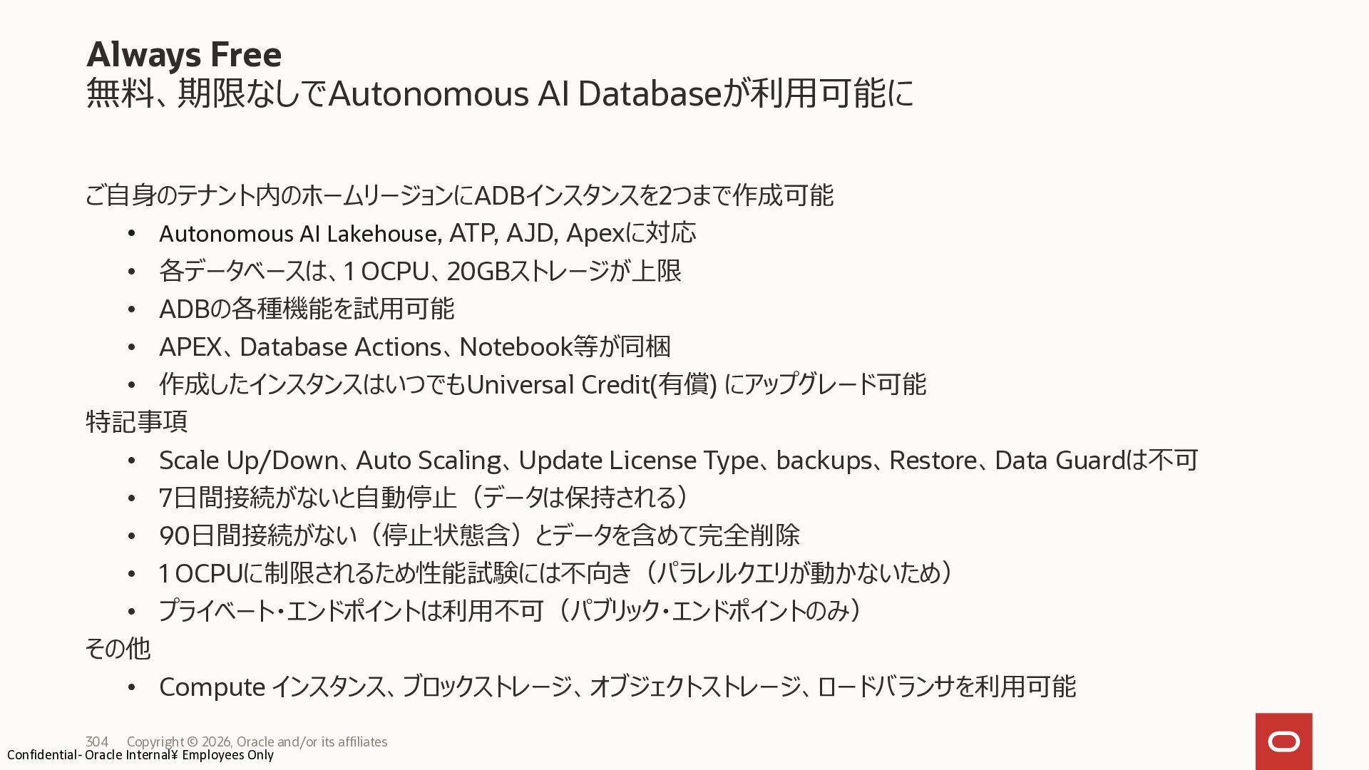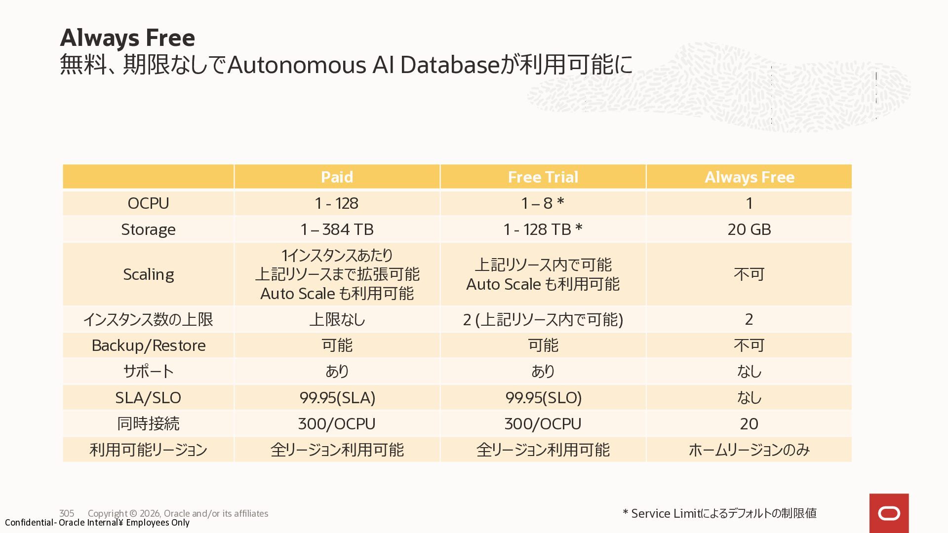 Oracle Autonomous AI Database のServerlessモデルに関する技術詳細です。