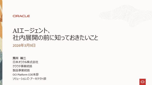 荒川 裕二(日本オラクル株式会社 / OCI Platform COE本部 ソリューションズ・アーキテクト部)