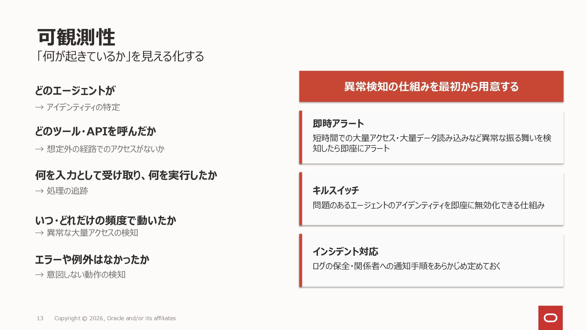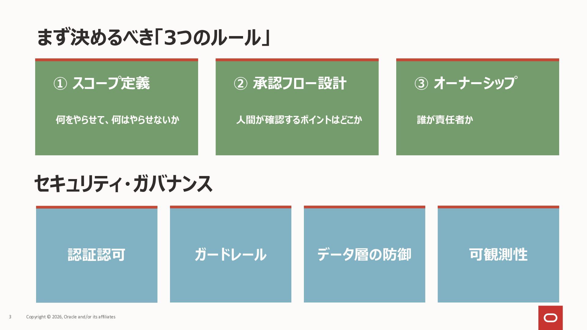 ・セキュリティ・ガバナンスの4本柱:認証認可、ガードレール、データ層の防御、可観測性