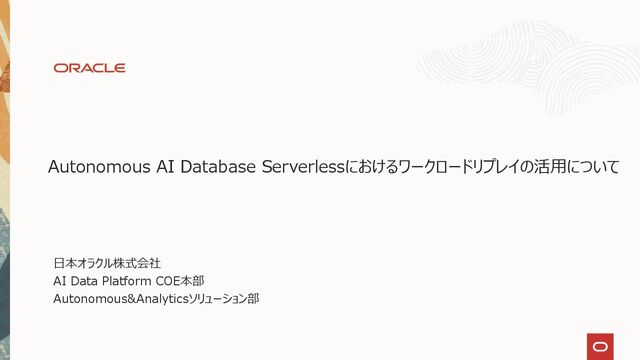 Autonomous AI Database Serverlessにおけるワークロードリプレイの活用について、以下の情報を纏めさせて頂きました。