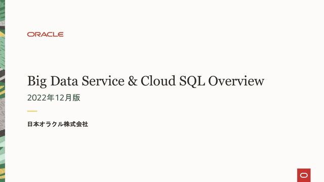 Data Service & Cloud SQL 価格表(日本円) Pay as You Go Anual Flex Metric Metric Minimum Oracle Big Data Service (*1) ¥2.100 ¥2.100 OCPU Per Hour - Oracle Big Data Service - Compute - Standard(*2) ¥18.816 ¥18.816 OCPU Per Hour 4 OCPUs per node Oracle Big Data Service - Compute - Dense I/O(*2) ¥29.960 ¥29.960 OCPU Per Hour 4 OCPUs per node Oracle Big Data Service - Compute - HPC(*2) ¥21.504 ¥21.504 OCPU Per Hour 4 OCPUs per node Oracle Cloud SQL - Compute Capacity ¥15.050 ¥15.050 OCPU Per Hour - 【補足】 • (*1) Oracle’s Distribution of Apache Hadoop (ODH) を使用する場合の価格です。 • (*2) Cloudera Distribution including Apache Hadoop (CDH) を使用する場合の価格です。 • 金額は1$=140円換算の日本円表記です。 • Oracle Big Data Serviceには、別途Computeが必要です。(作成したインスタンスの分が課金されます) • Oracle Big Data Serviceには、別途Block Storageが必要です。 • Oracle Big Data Service - Compute - Standard の場合、別途Block Storage が必要です。 • Oracle Big Data Service - Compute - Dense I/O および Compute - HPC の場合、上記価格にストレージの金額も含まれ ます。