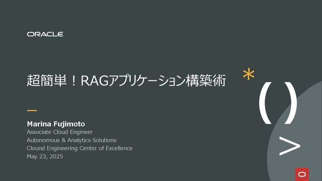 超簡単!RAGアプリケーション構築術 Marina Fujimoto Associate Cloud Engineer Autonomous & Analytics Solutions