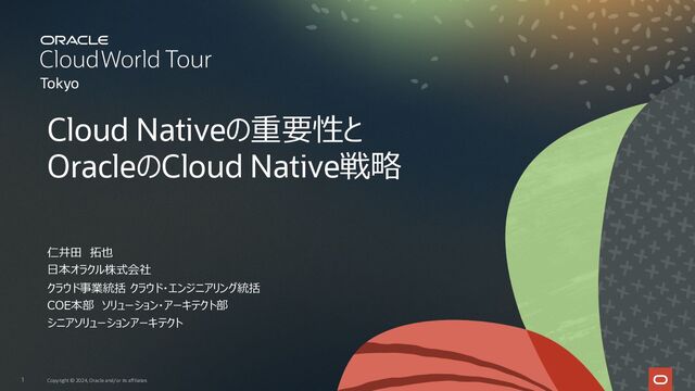 2024/4/17に開催されたOracle Cloud World Tour Tokyoのシアターセッションで実施した「Cloud Nativeの重要性とOracleのCloud Native戦略」と言うセッション資料になります。