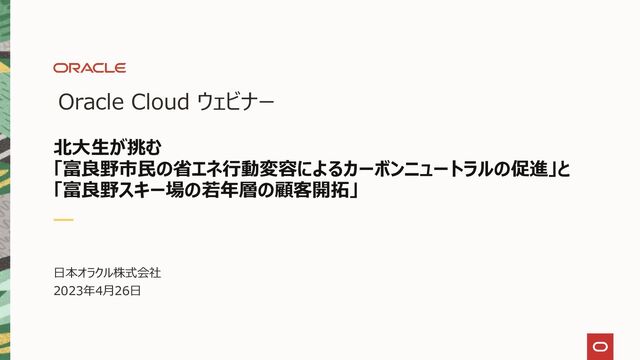 【Oracle Cloud ウェビナー】 北大生が挑む 「富良野市民の省エネ行動変容によるカーボンニュートラルの促進」と「富良野スキー場の若年層の顧客開拓」