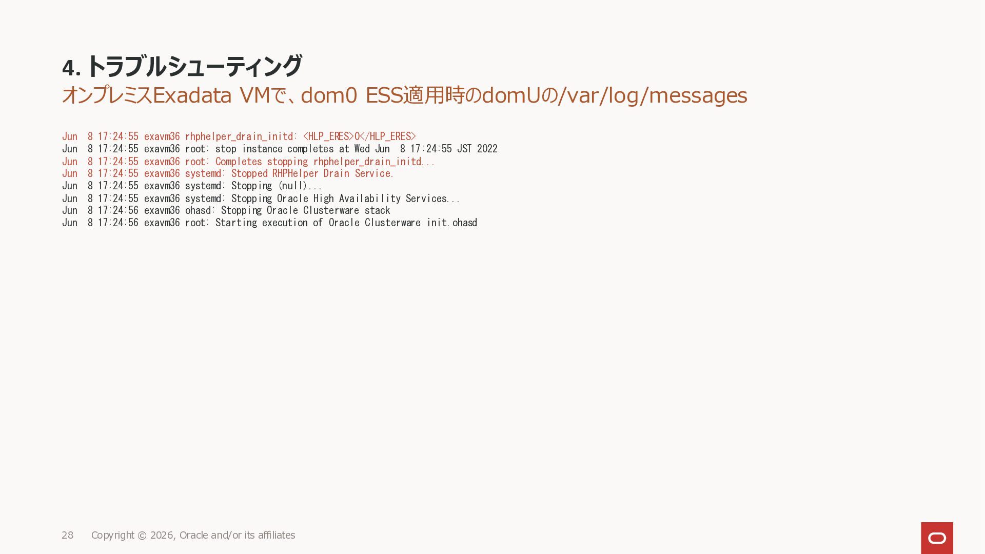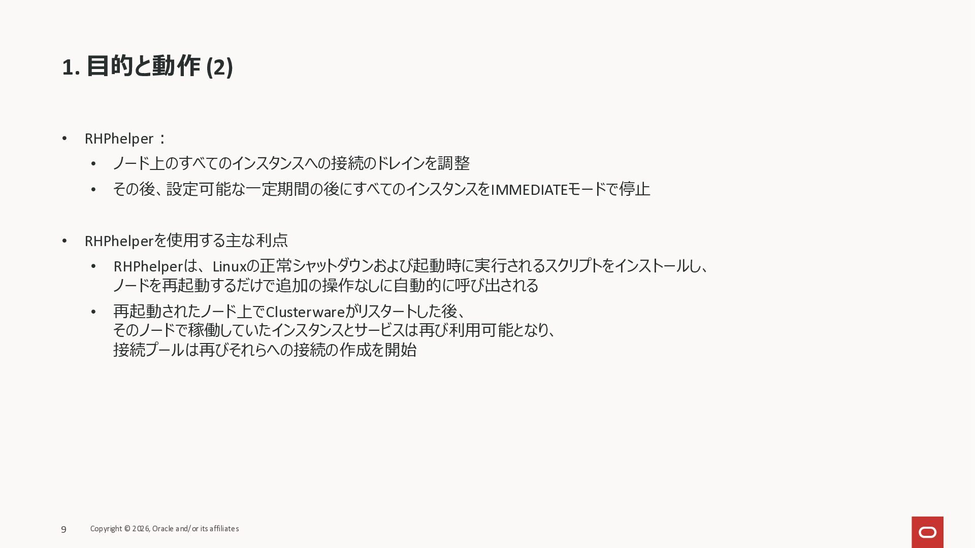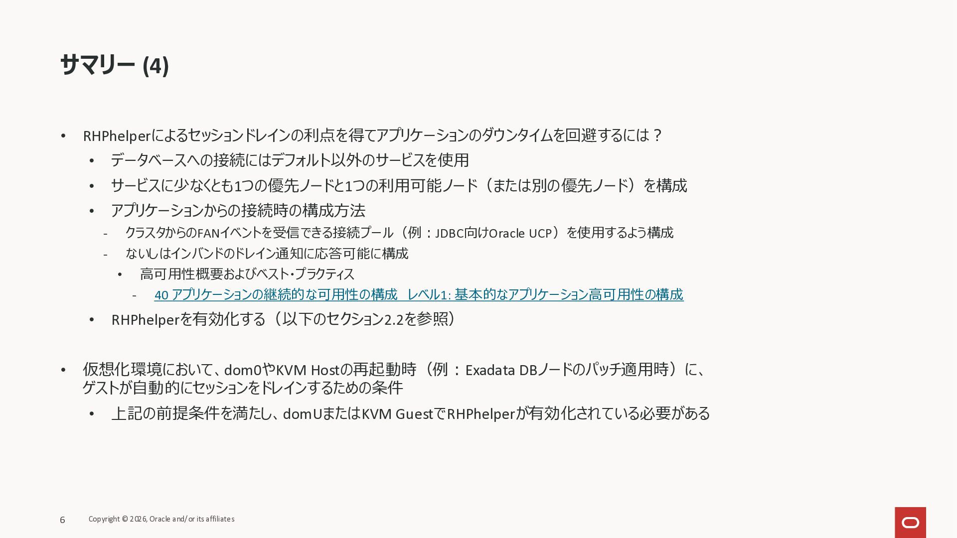 KB146644 Using RHPhelper to Minimize Downtime During Planned Maintenance on Exadata(旧 MOS Doc ID 2385790.1)を確認してまとめた資料です。 ExadataのGuest VM OSパッチ、Exadata Infrastructureメンテナンス適用時に内部で動いているrhphelperの説明をまとめました。