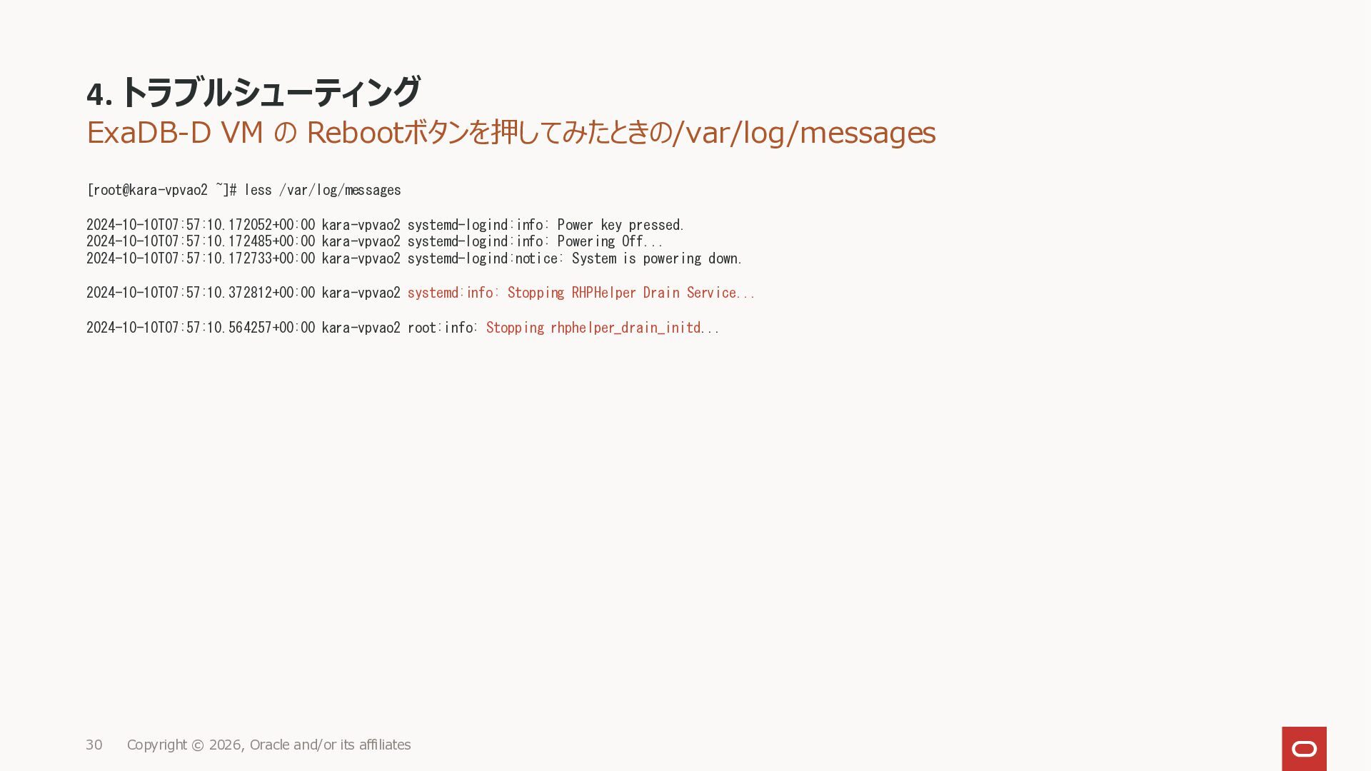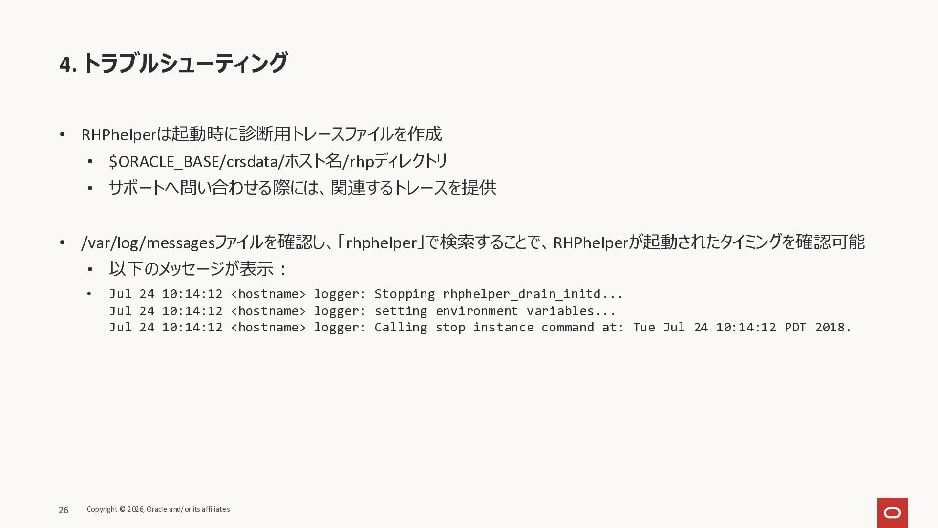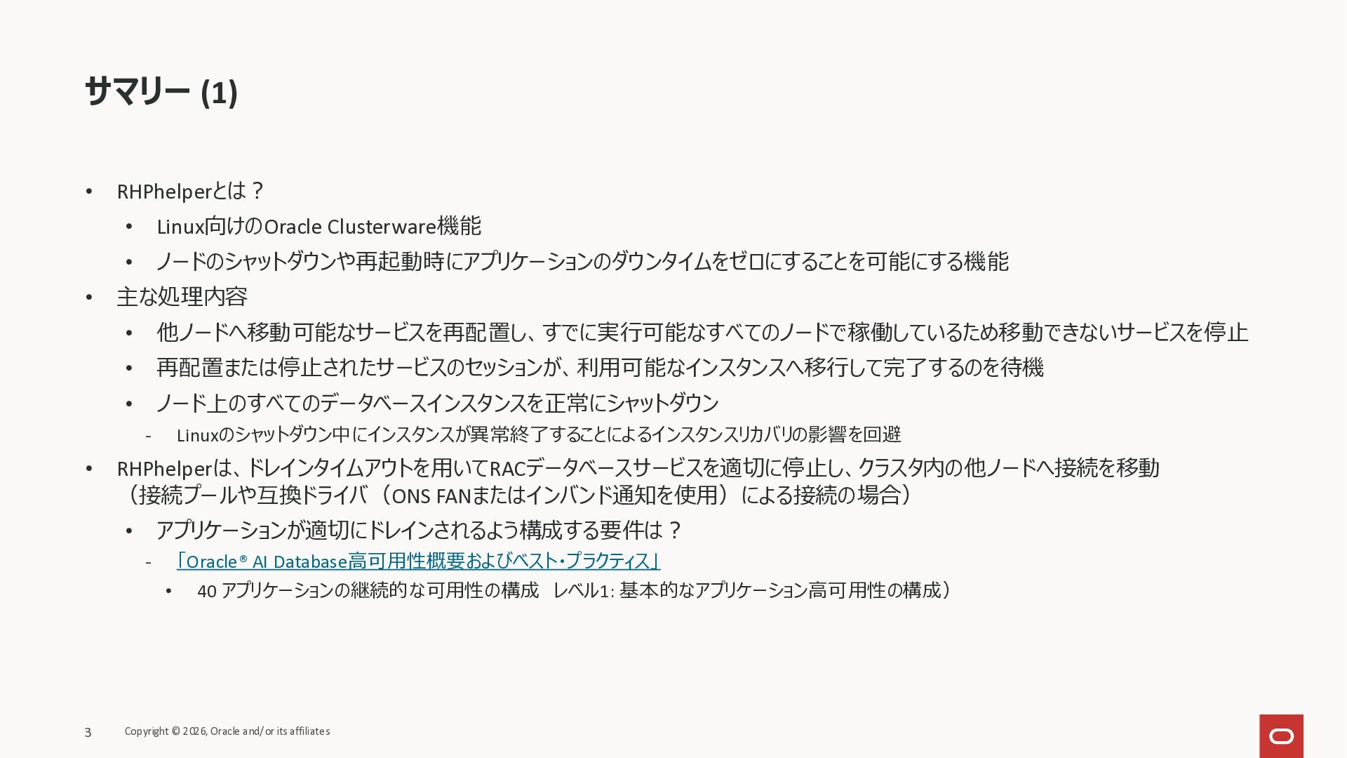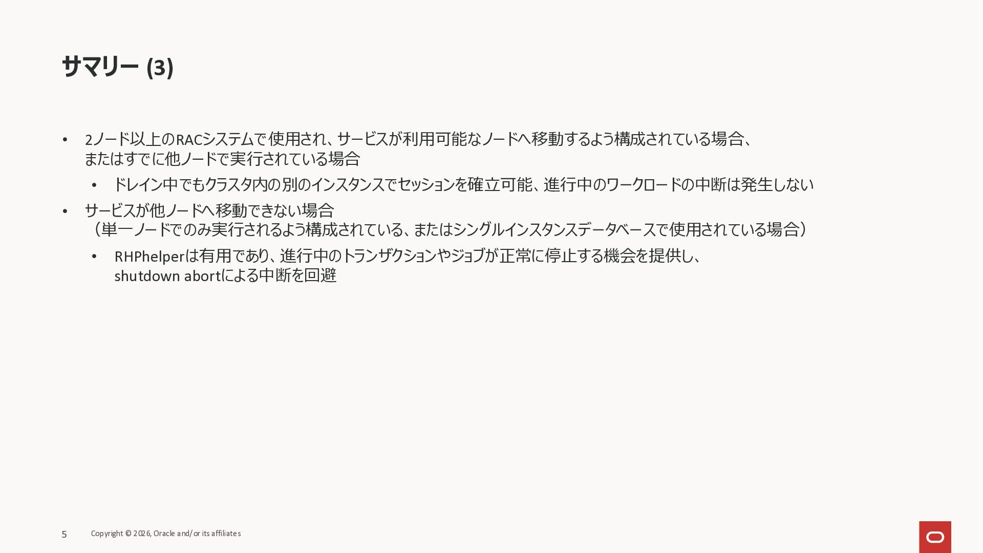 KB146644 Using RHPhelper to Minimize Downtime During Planned Maintenance on Exadata(旧 MOS Doc ID 2385790.1)を確認してまとめた資料です。 ExadataのGuest VM OSパッチ、Exadata Infrastructureメンテナンス適用時に内部で動いているrhphelperの説明をまとめました。