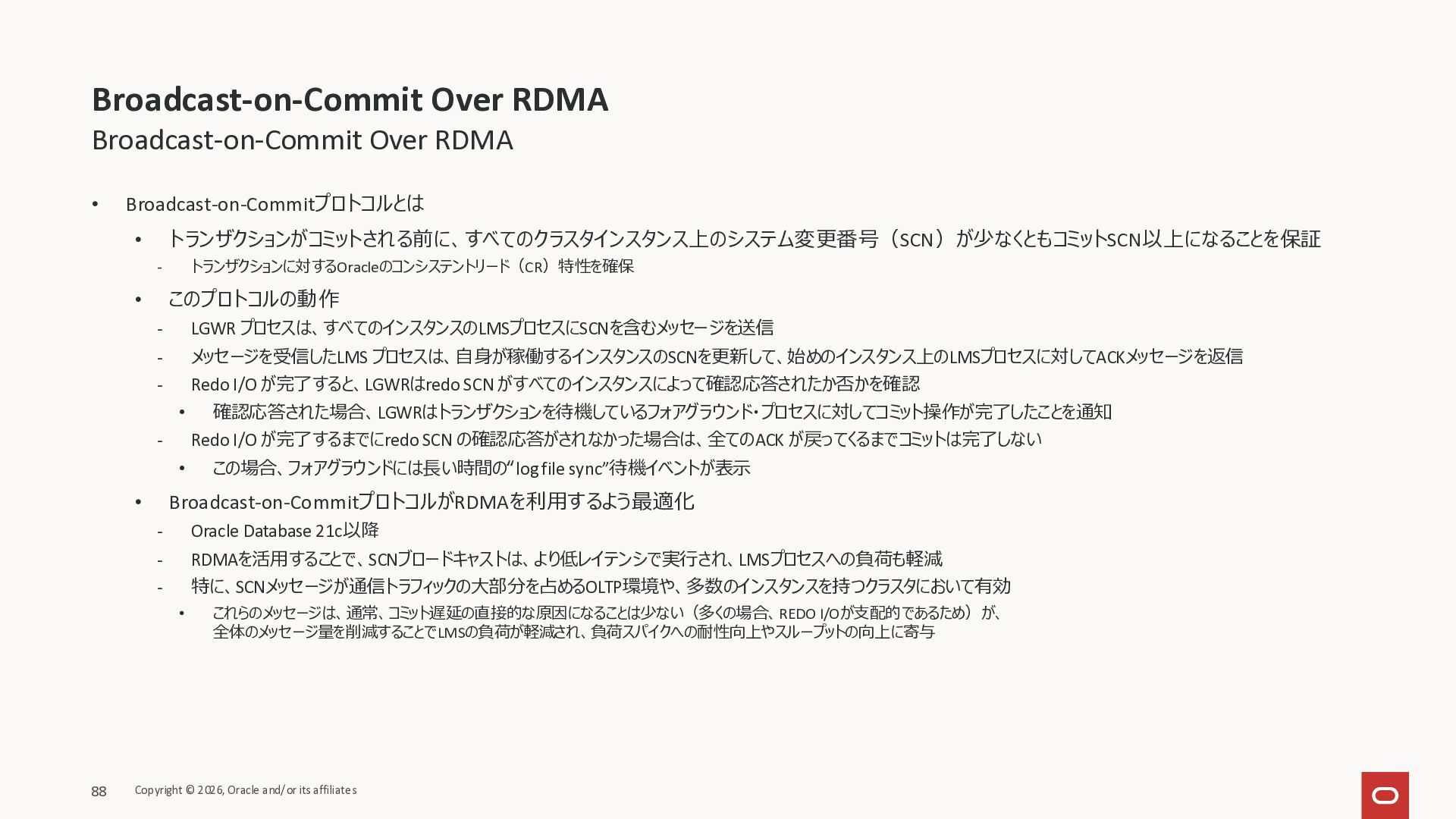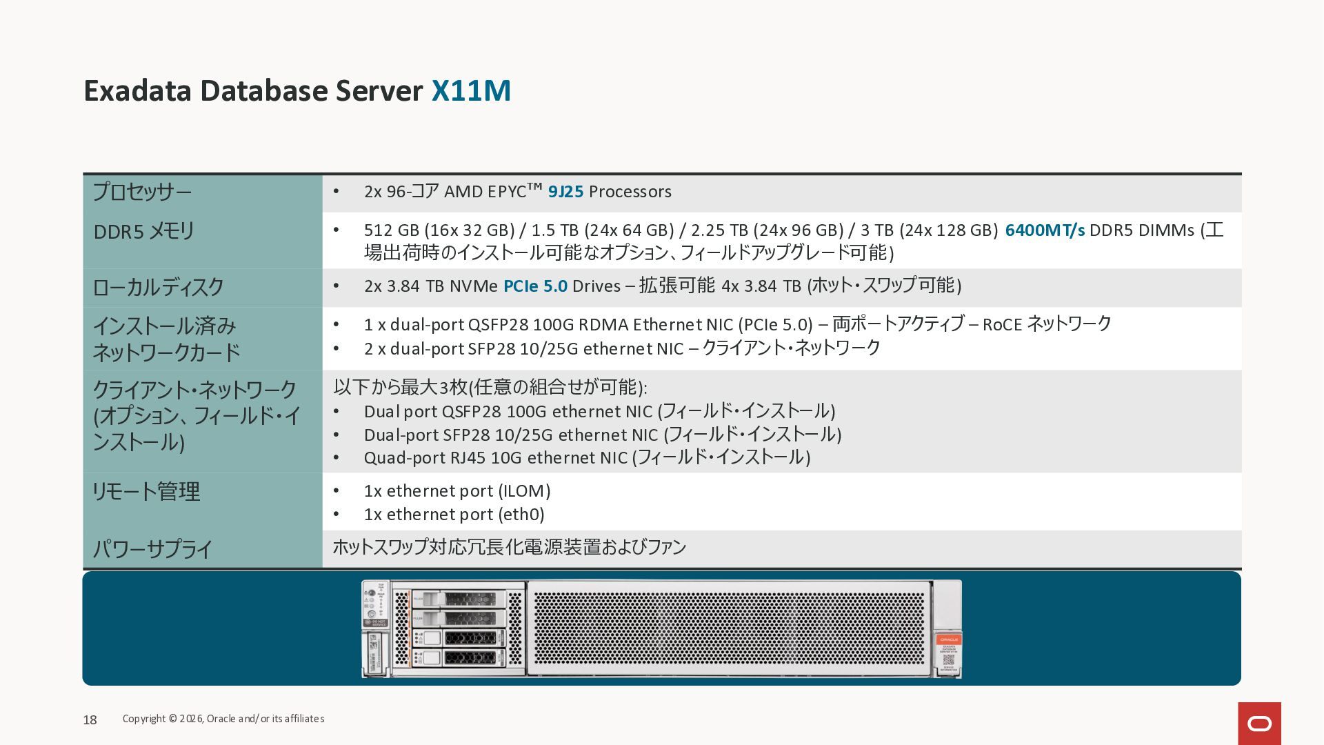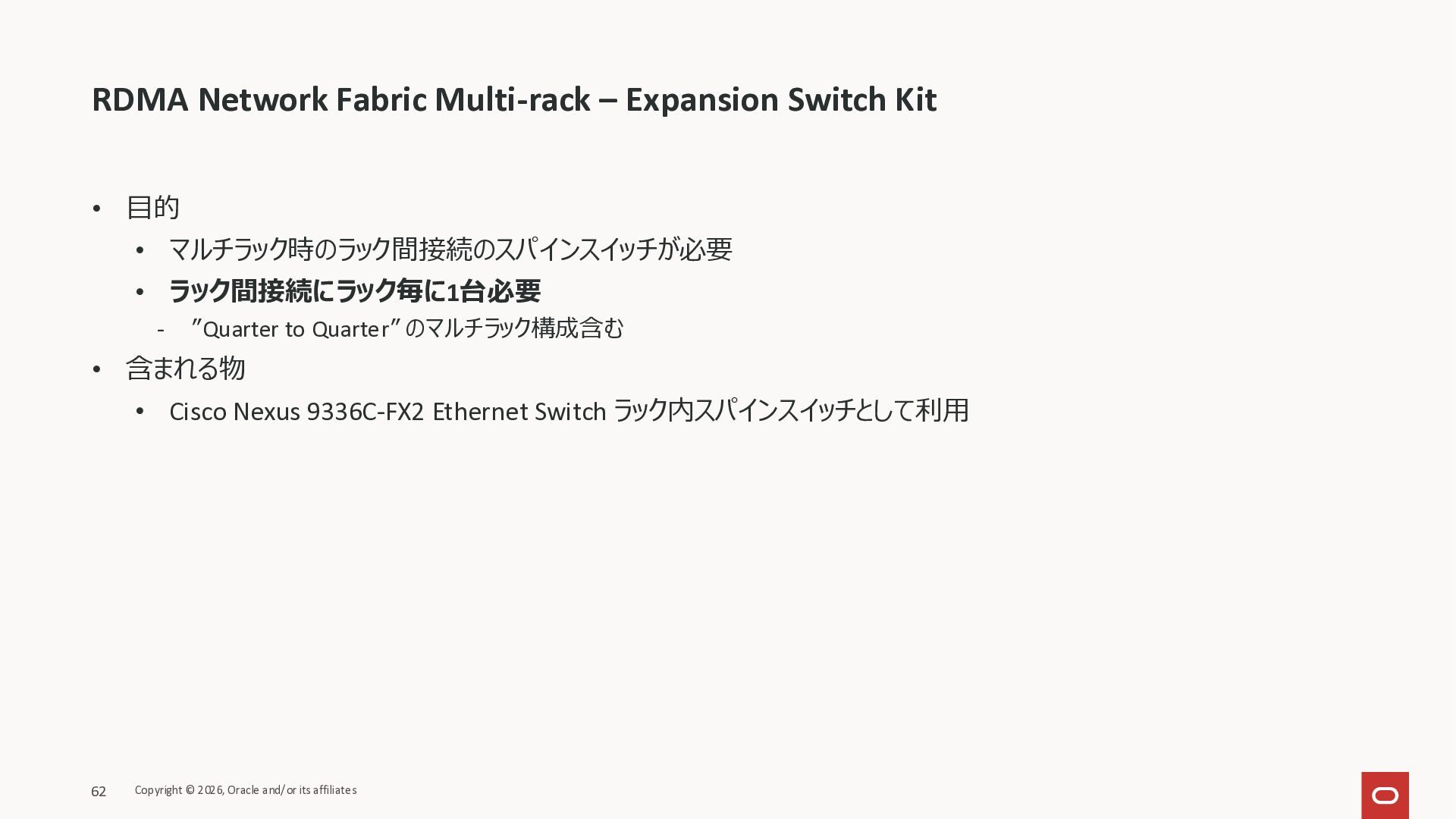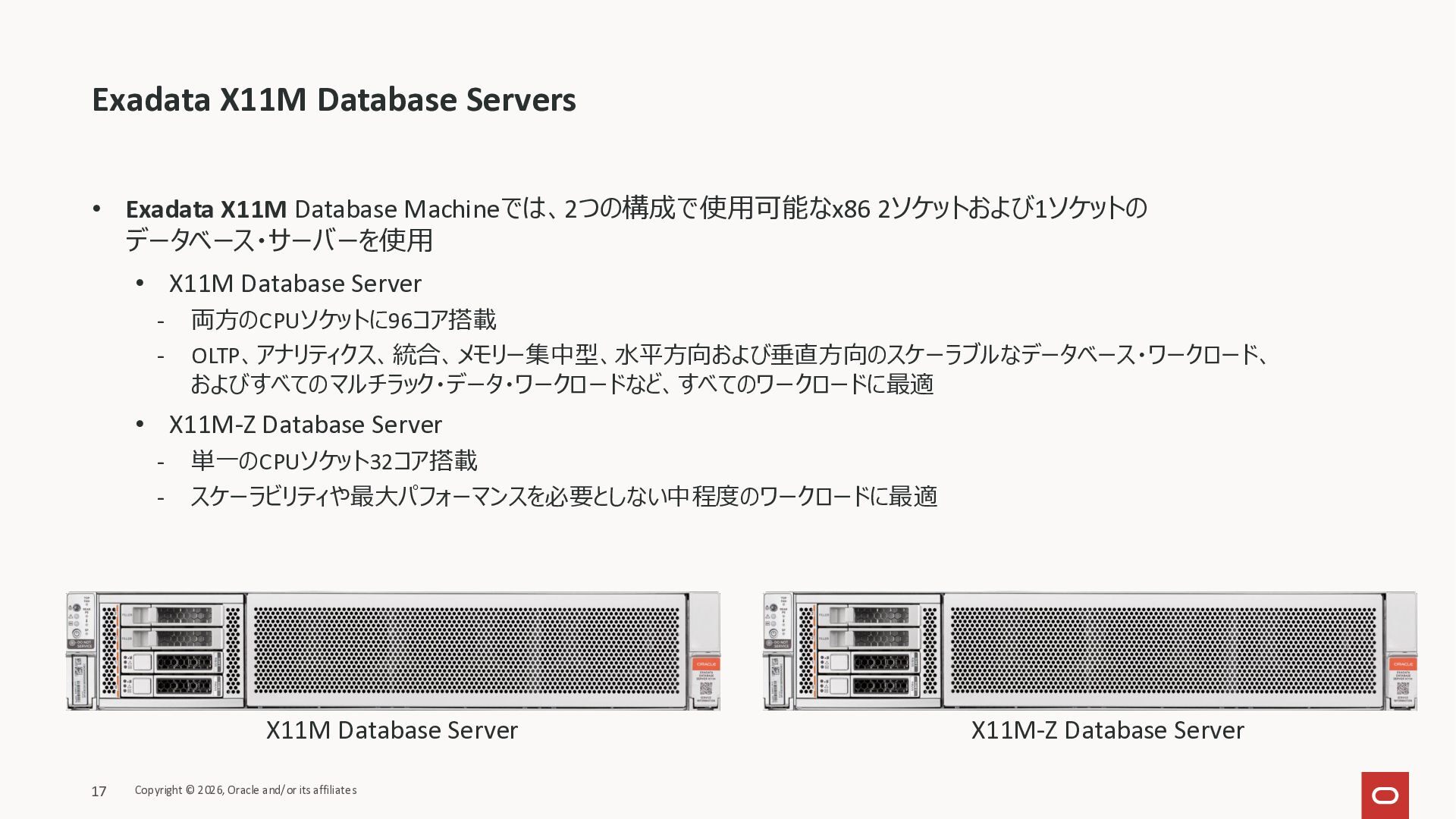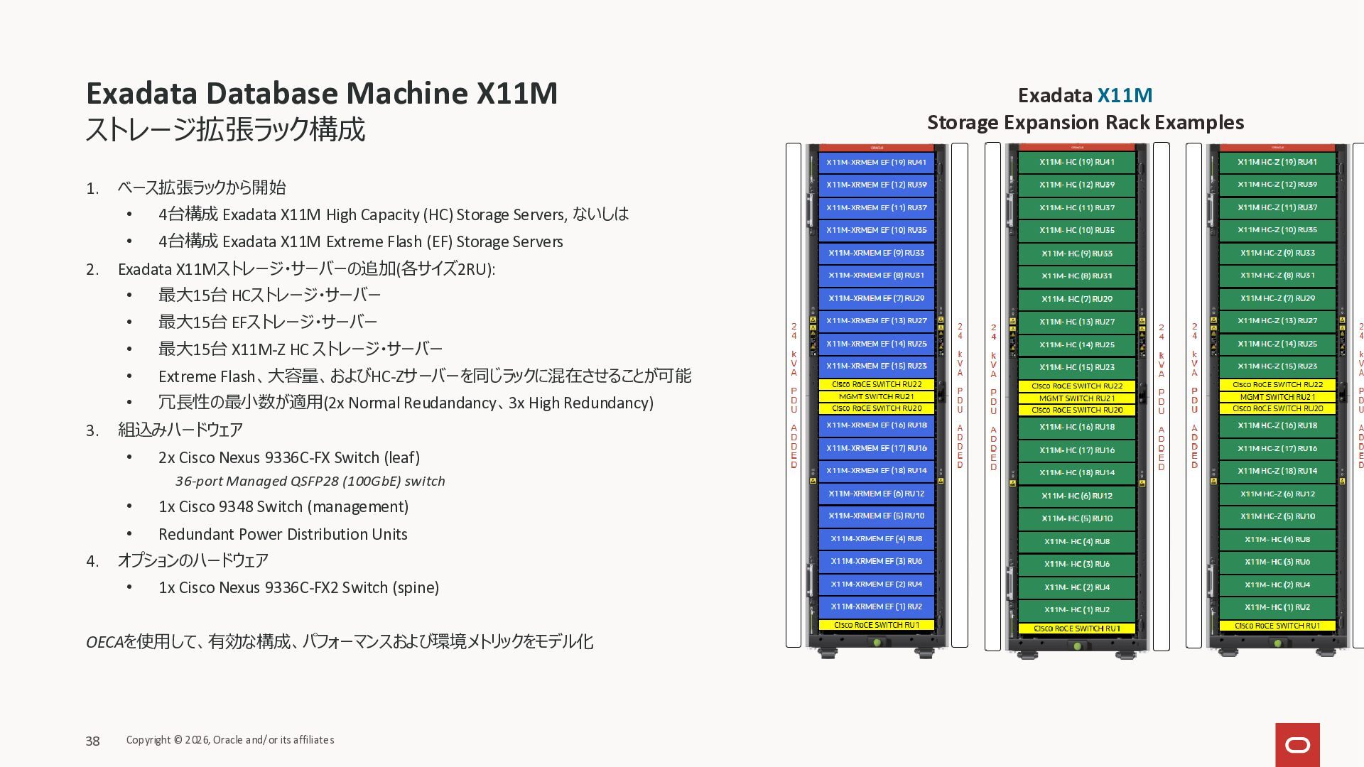 Exadata Exascaleストレージをネイティブにサ ポート • Direct I/OおよびRDMA操作を使用 165 Copyright © 2026, Oracle and/or its affiliates Exadata Storage Exadata Exascale Services と Exadata スマートストレージ機能 Storage Pools, Vault and Volume Management, redundancy and partnering, caching and tiering, file metadata management, snapshots and clones, data integrity, Smart Flash Cache, XRMEM Data Accelerator, Smart Scan, Storage Indexes, Columnar Caching, Bloom filters, 等 Oracle Grid Infrastructure Oracle AI Database 26ai Exadata Compute すべてのExadata Smart Storage機能 が利用可能