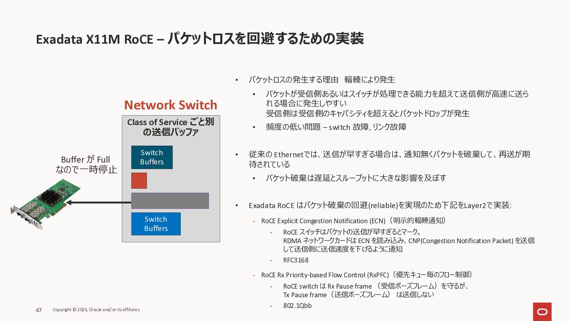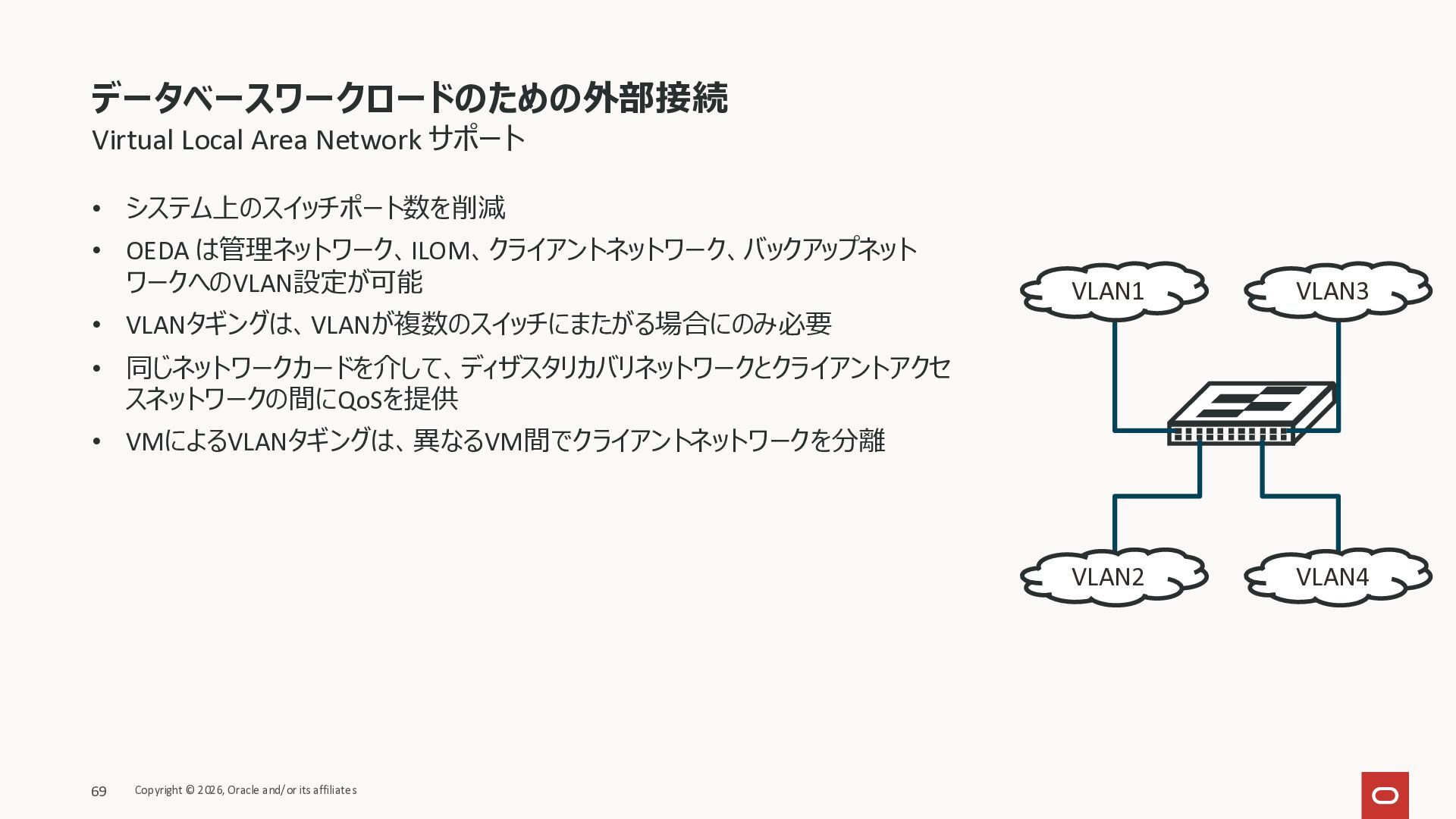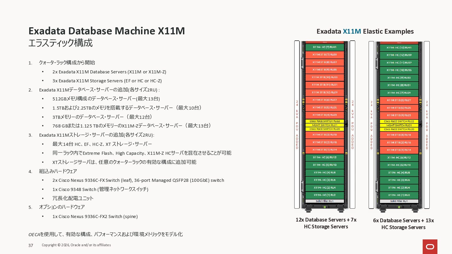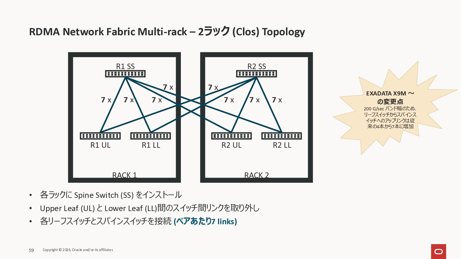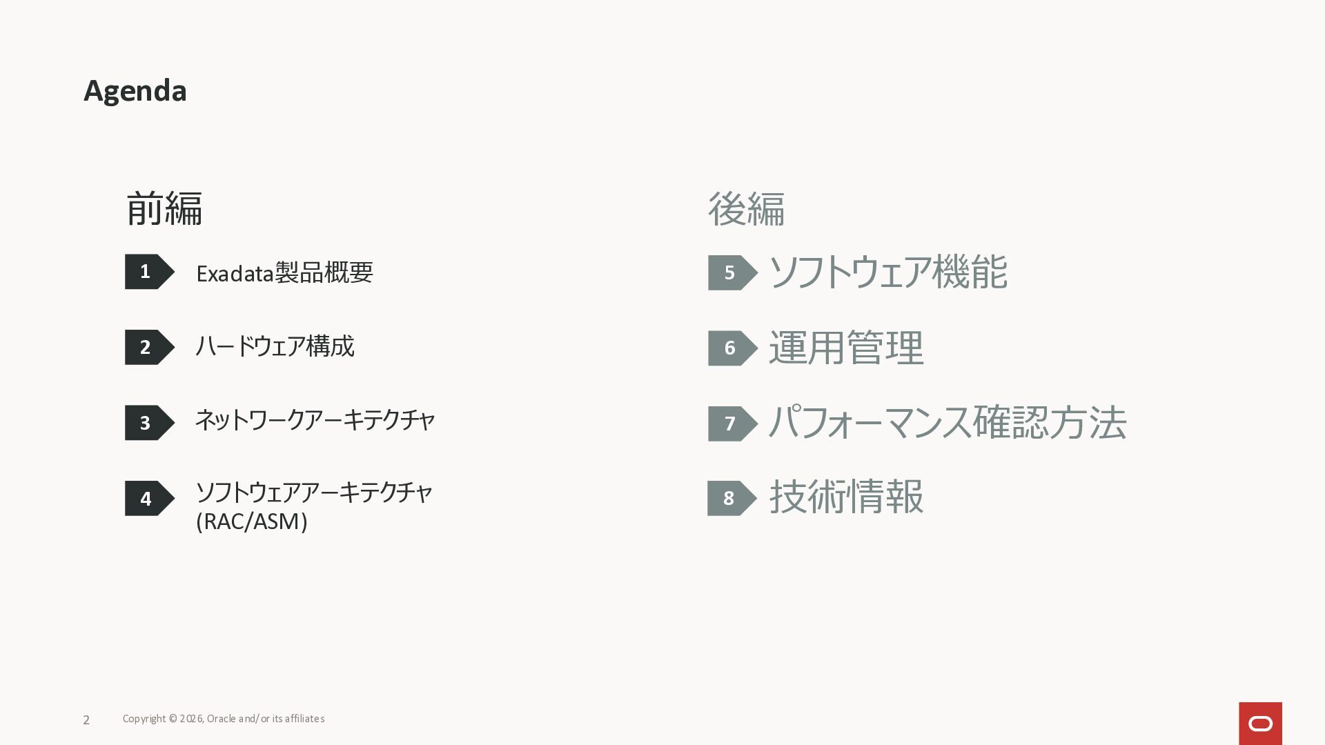Exadata Exascaleストレージをネイティブにサ ポート • Direct I/OおよびRDMA操作を使用 165 Copyright © 2026, Oracle and/or its affiliates Exadata Storage Exadata Exascale Services と Exadata スマートストレージ機能 Storage Pools, Vault and Volume Management, redundancy and partnering, caching and tiering, file metadata management, snapshots and clones, data integrity, Smart Flash Cache, XRMEM Data Accelerator, Smart Scan, Storage Indexes, Columnar Caching, Bloom filters, 等 Oracle Grid Infrastructure Oracle AI Database 26ai Exadata Compute すべてのExadata Smart Storage機能 が利用可能