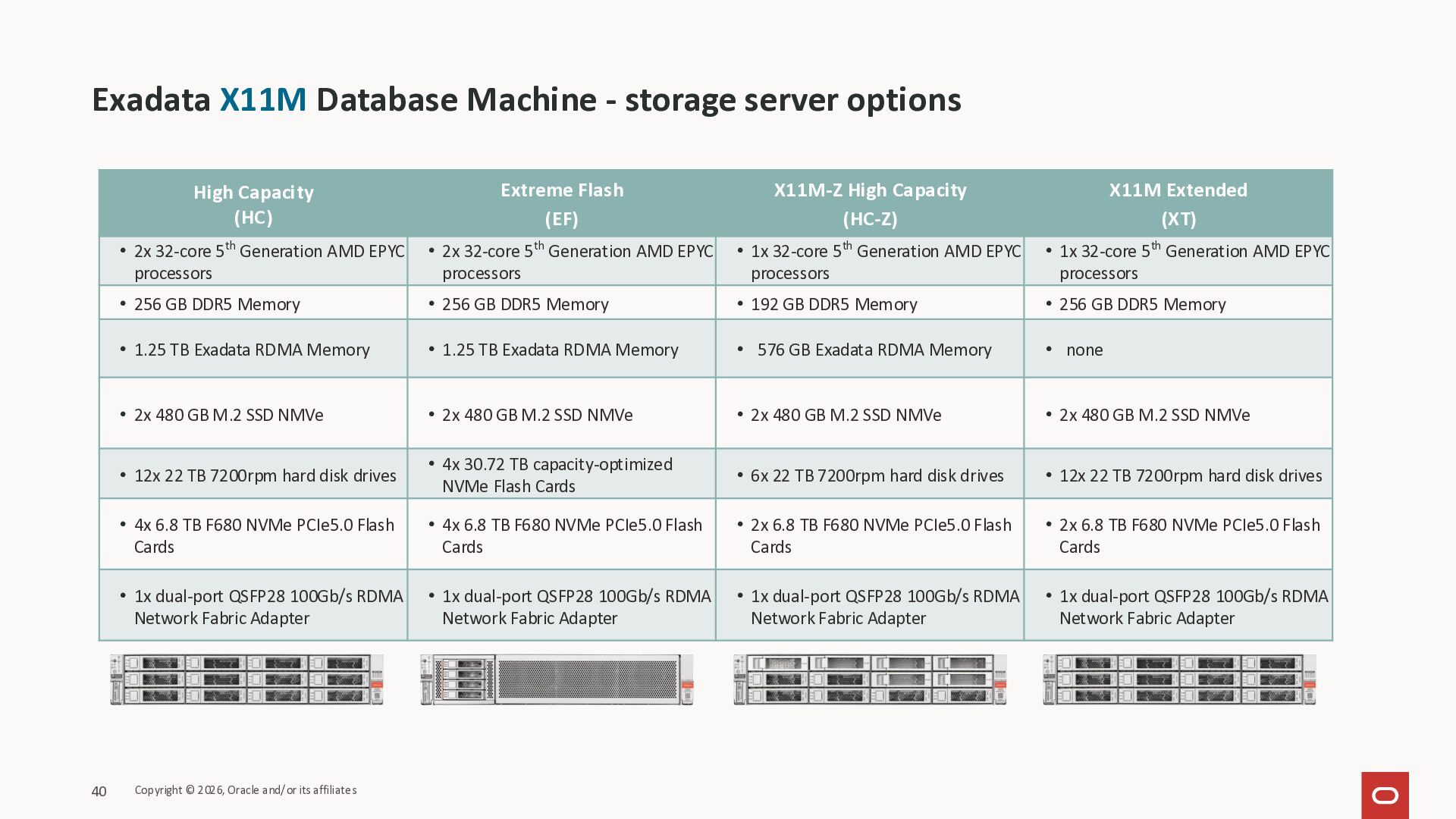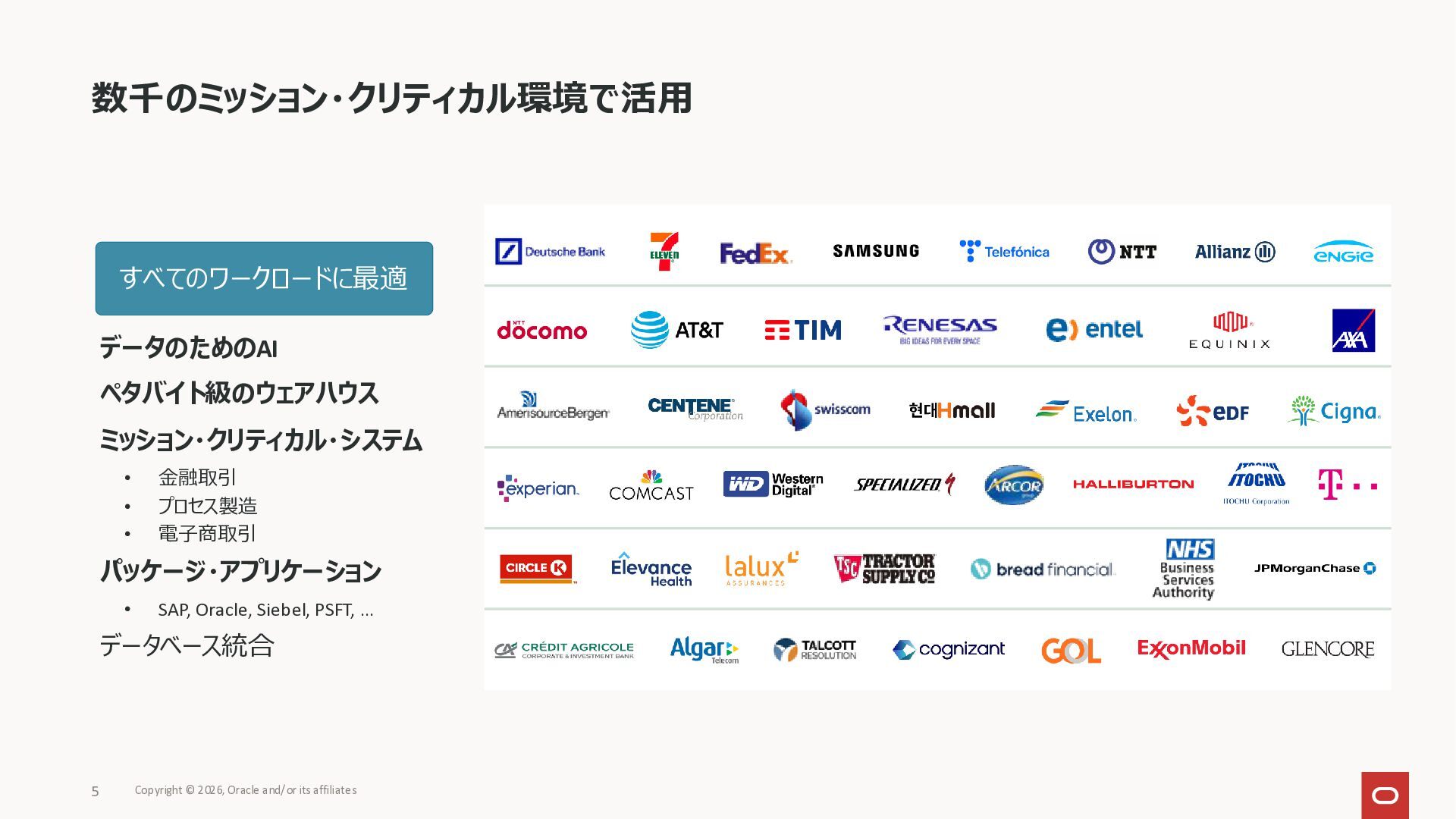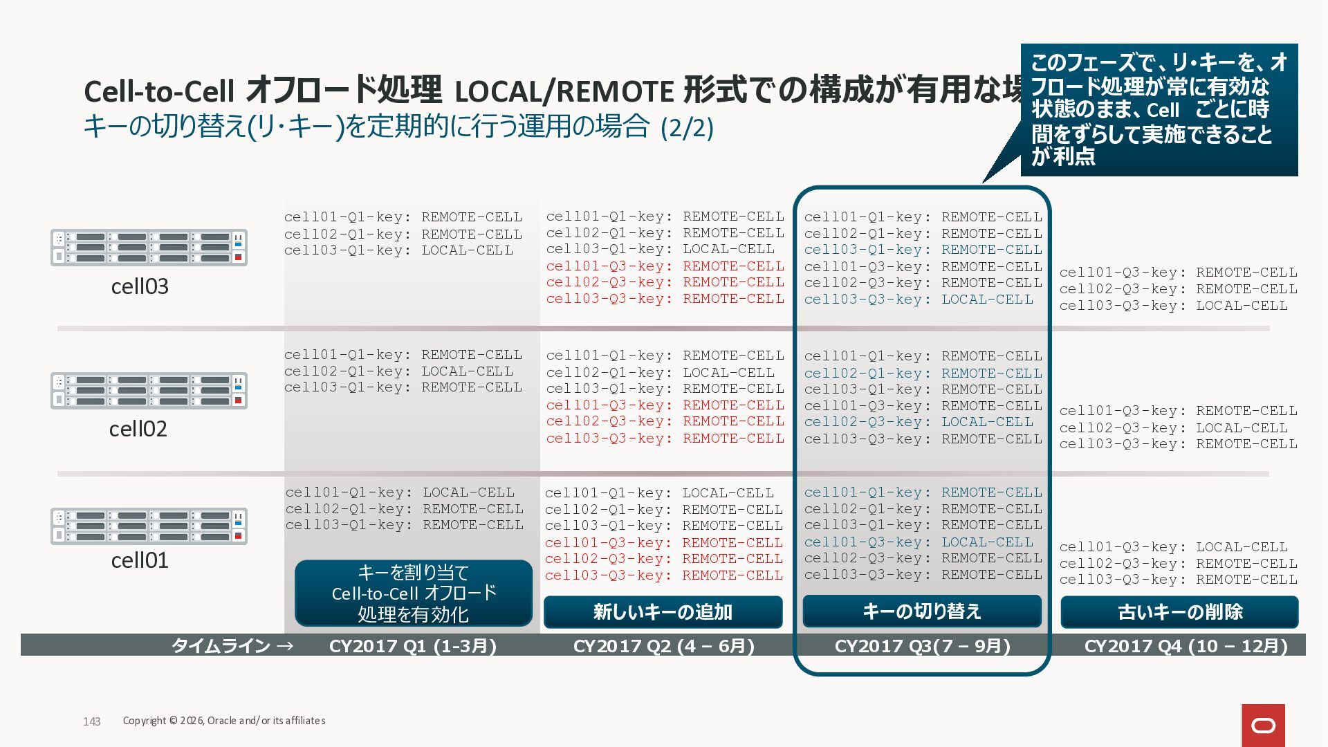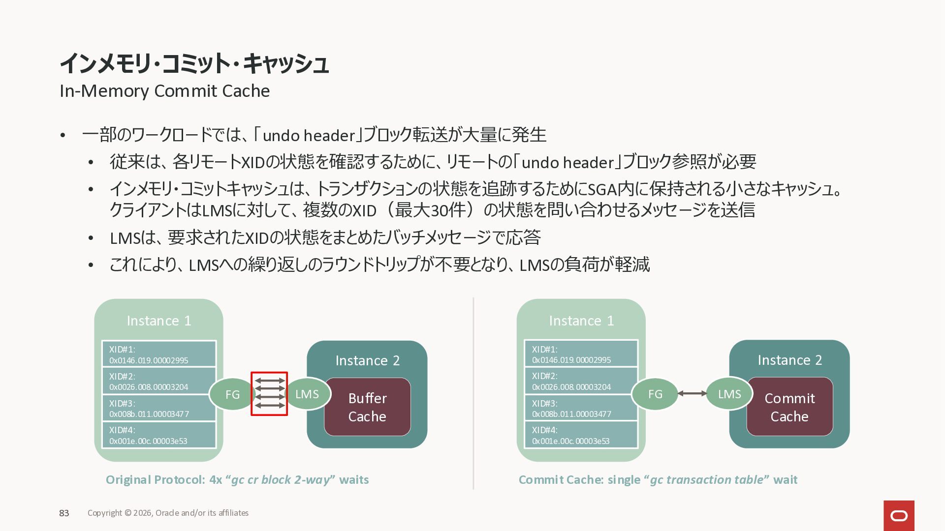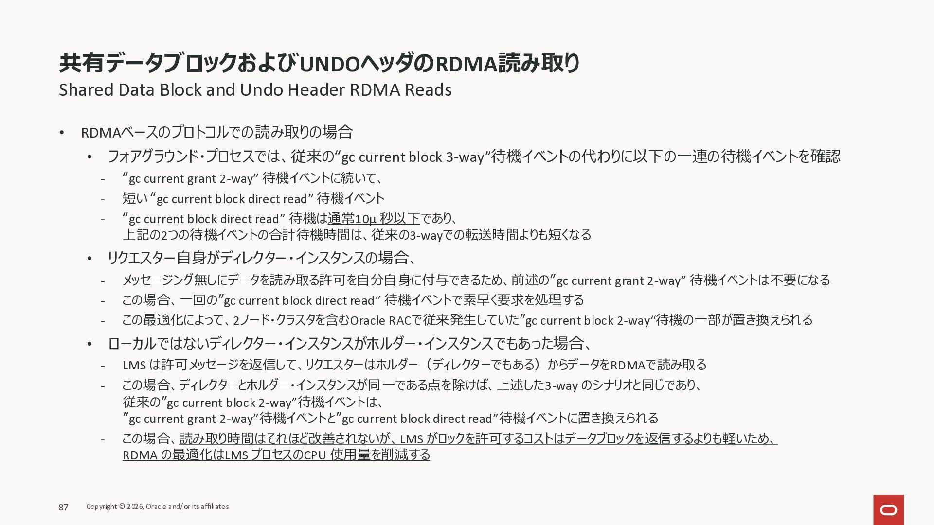 Exadata Exascaleストレージをネイティブにサ ポート • Direct I/OおよびRDMA操作を使用 165 Copyright © 2026, Oracle and/or its affiliates Exadata Storage Exadata Exascale Services と Exadata スマートストレージ機能 Storage Pools, Vault and Volume Management, redundancy and partnering, caching and tiering, file metadata management, snapshots and clones, data integrity, Smart Flash Cache, XRMEM Data Accelerator, Smart Scan, Storage Indexes, Columnar Caching, Bloom filters, 等 Oracle Grid Infrastructure Oracle AI Database 26ai Exadata Compute すべてのExadata Smart Storage機能 が利用可能