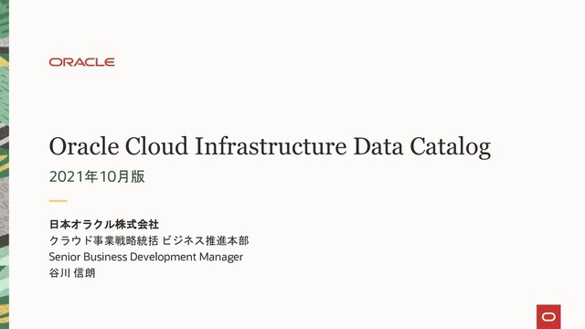 Oracle Cloud Infrastructure Data Catalog 2021年10月版 日本オラクル株式会社 クラウド事業戦略統括 ビジネス推進本部 Senior