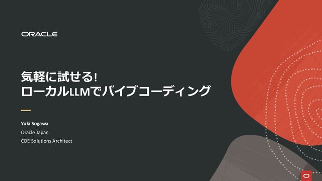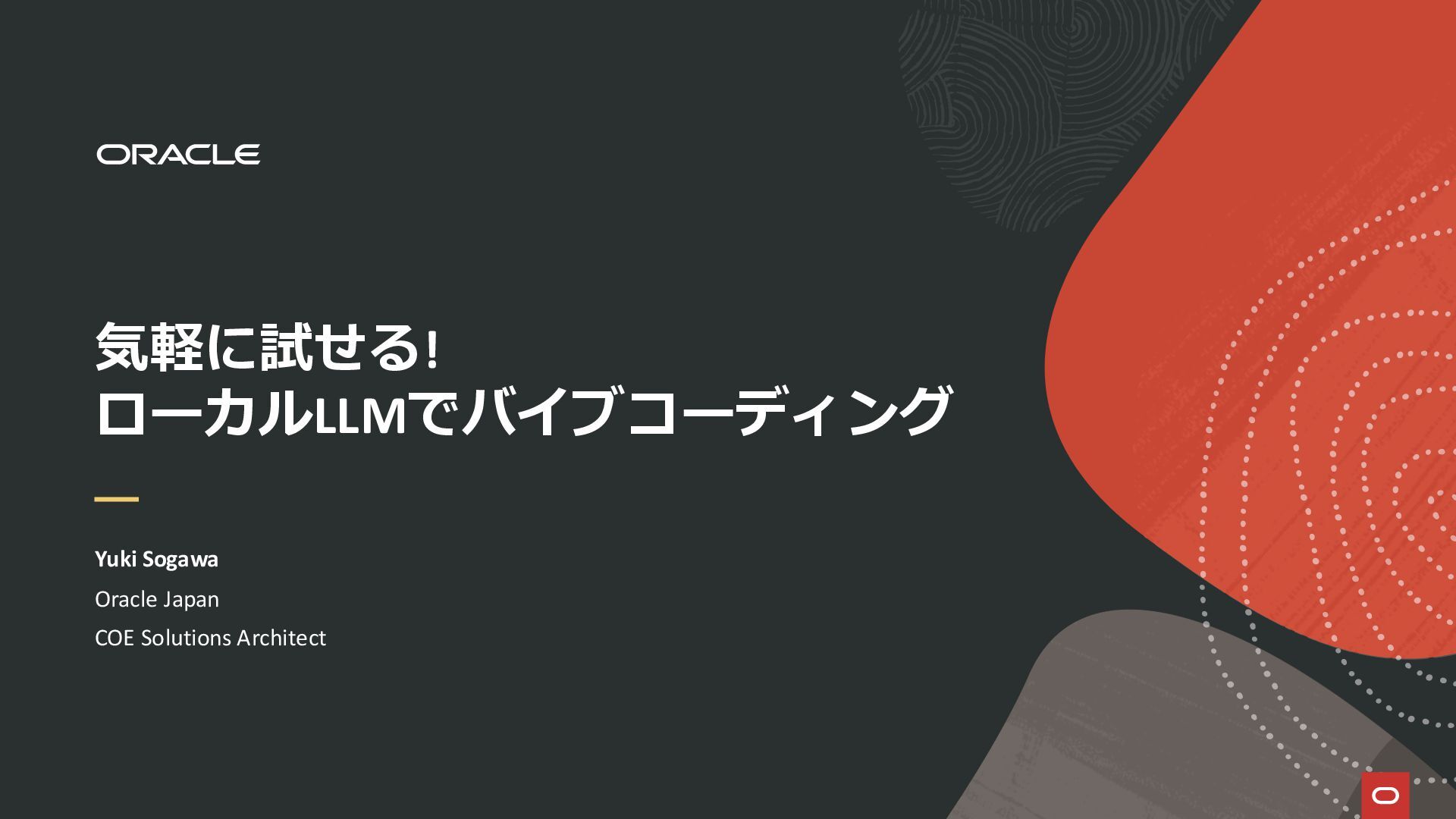 気軽に試せる! ローカルLLMでバイブコーディング Yuki Sogawa Oracle Japan COE Solutions Architect