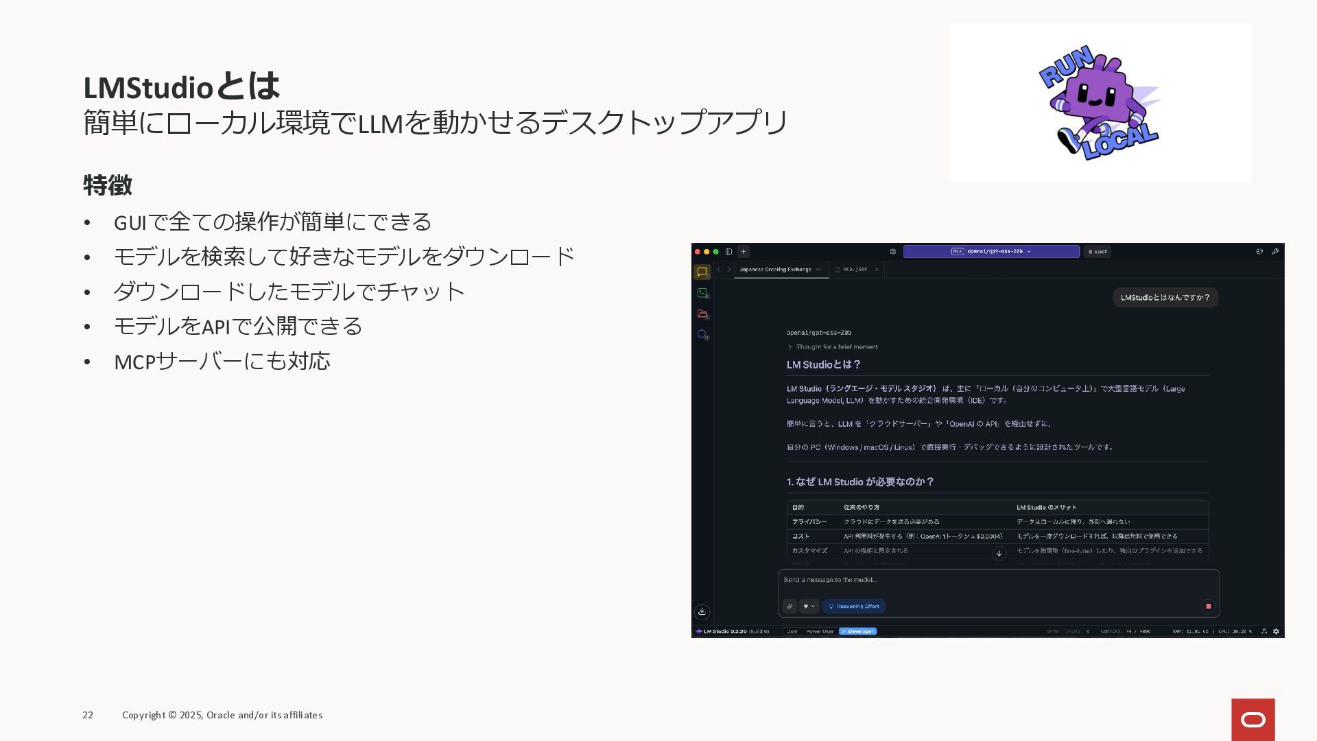 LMStudioの機能 チャット 25 Copyright © 2025, Oracle and/or its affiliates