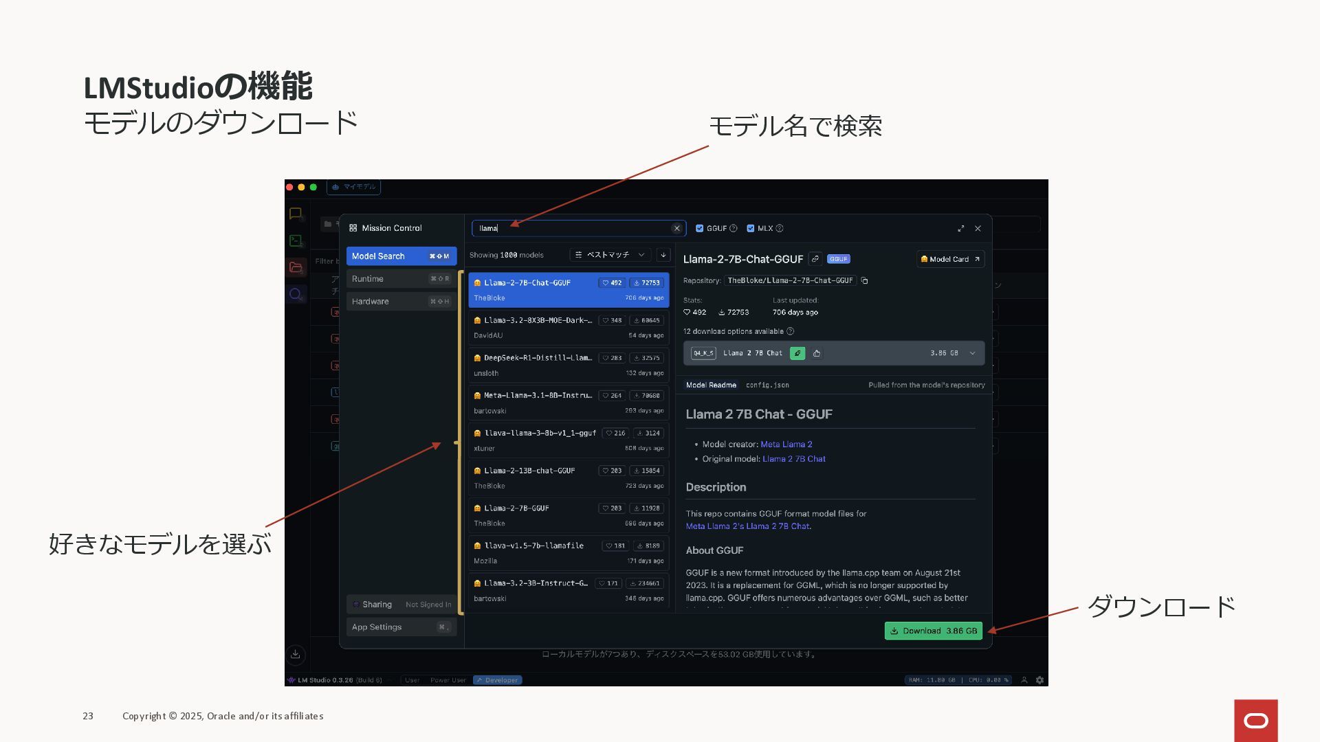 LMStudioの機能 モデルのダウンロード 23 Copyright © 2025, Oracle and/or its affiliates