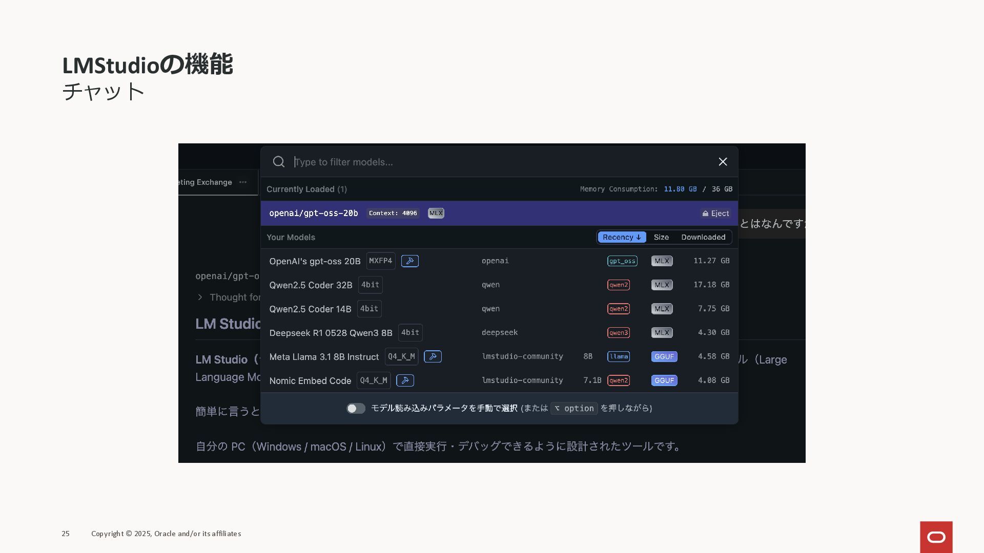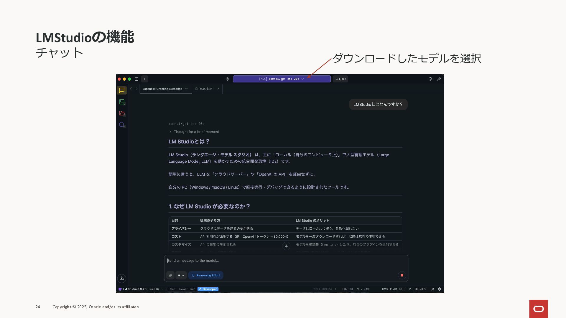 LMStudioの機能 チャット 24 Copyright © 2025, Oracle and/or its affiliates
