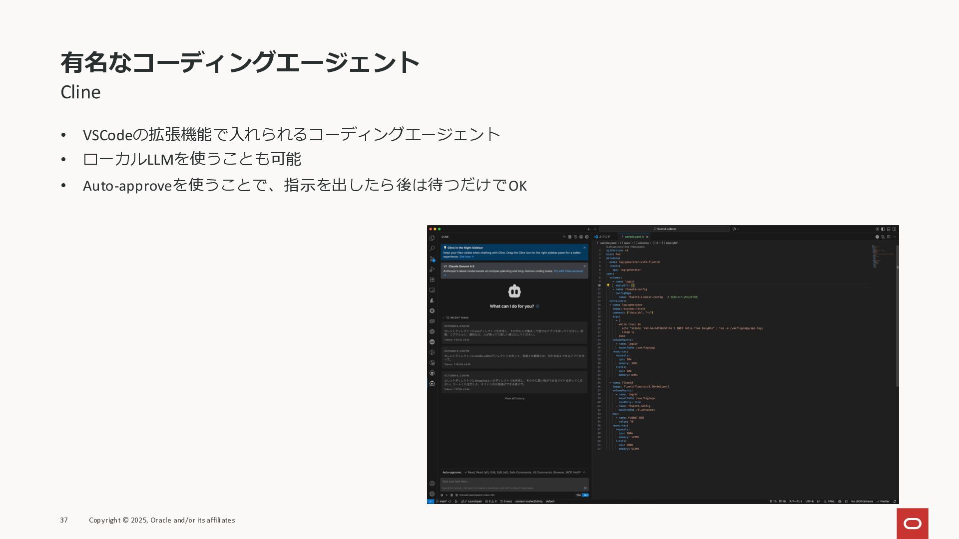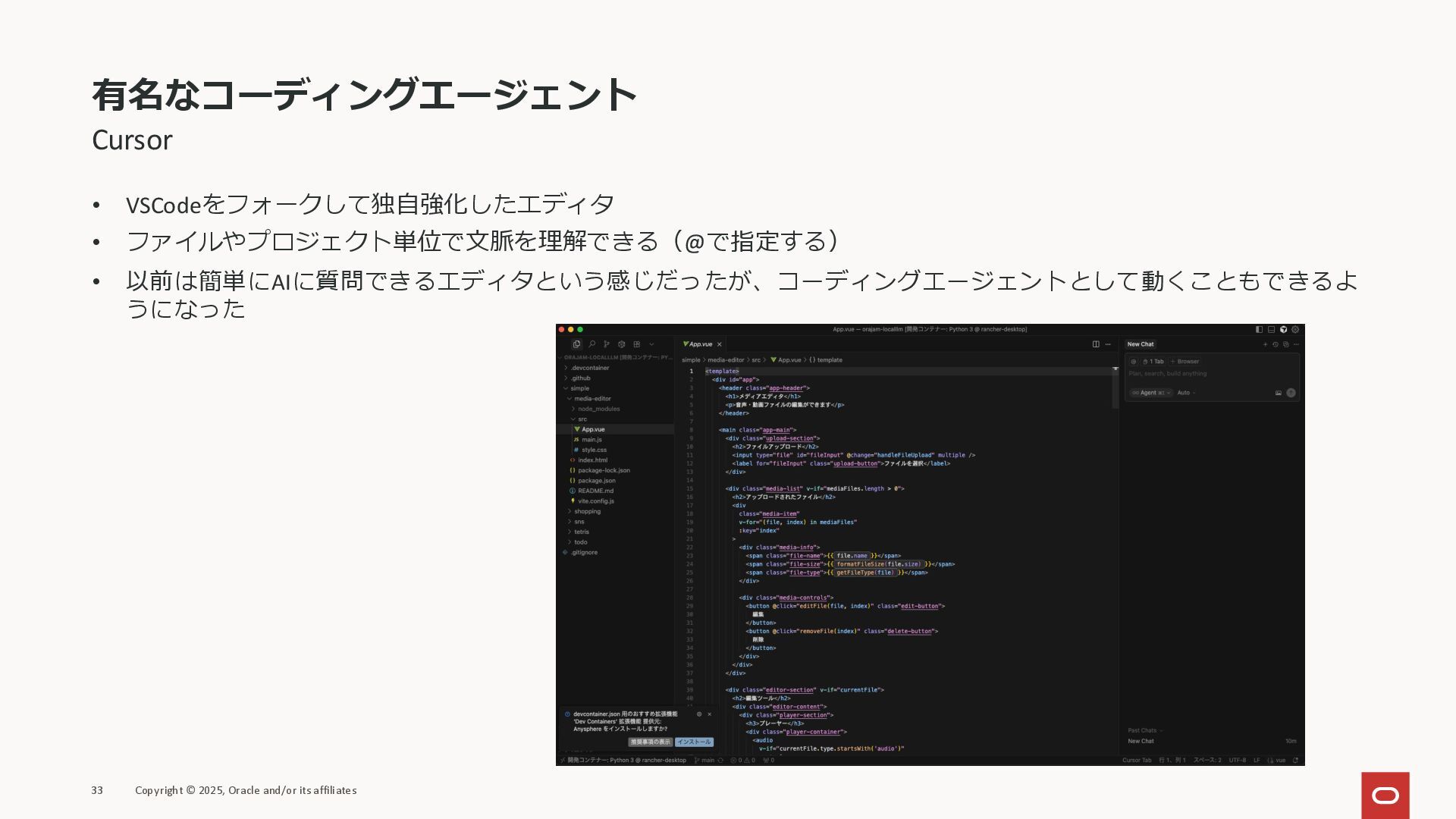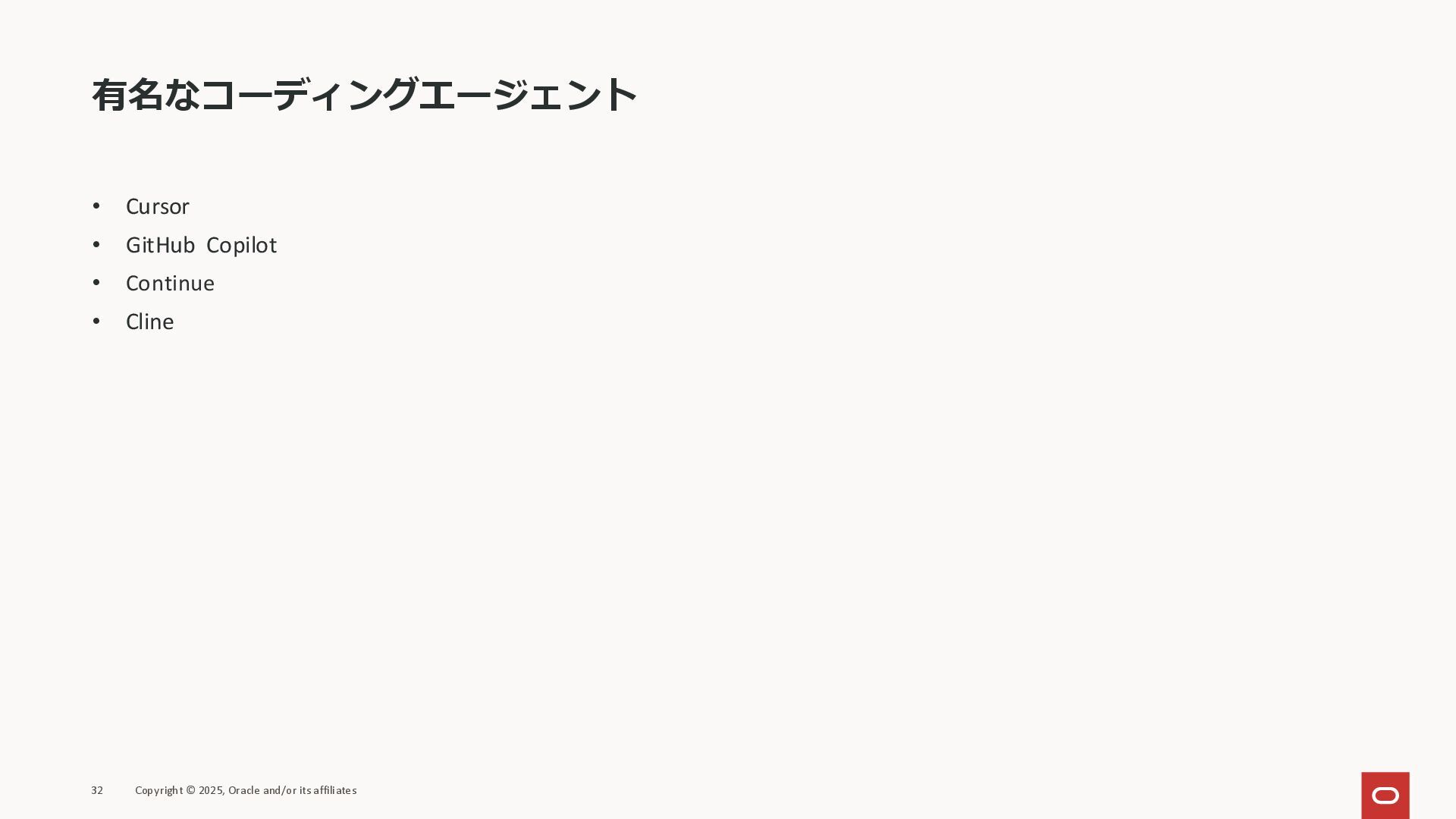 最近のバイブコーディング コピペすら不要に 31 Copyright © 2025, Oracle and/or its affiliates