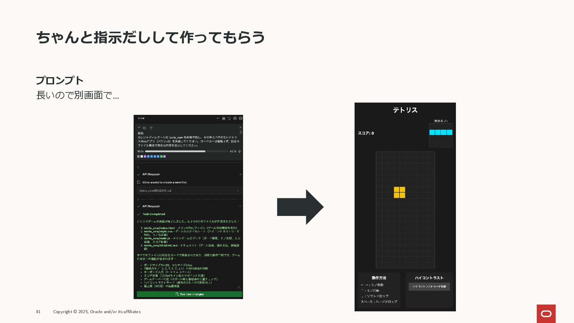 ちゃんと指示だしして作ってもらう プロンプト 長いので別画面で… 41 Copyright © 2025, Oracle and/or its