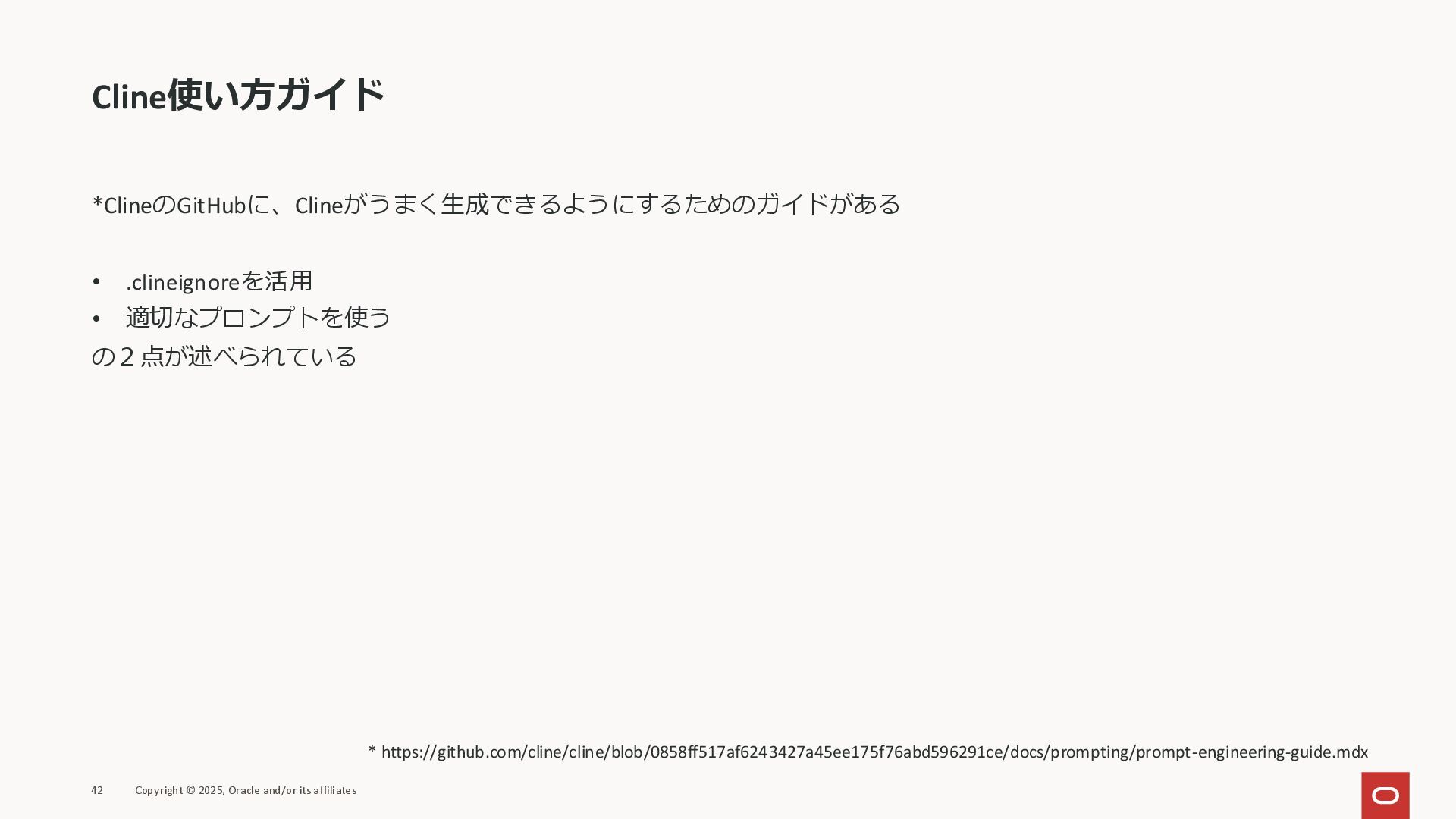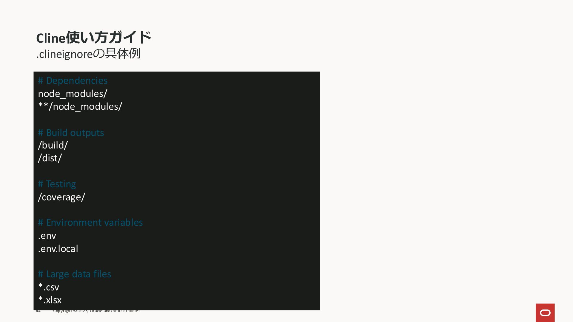 Cline使い方ガイド .clineignoreの具体例 44 Copyright © 2025, Oracle and/or its affiliates