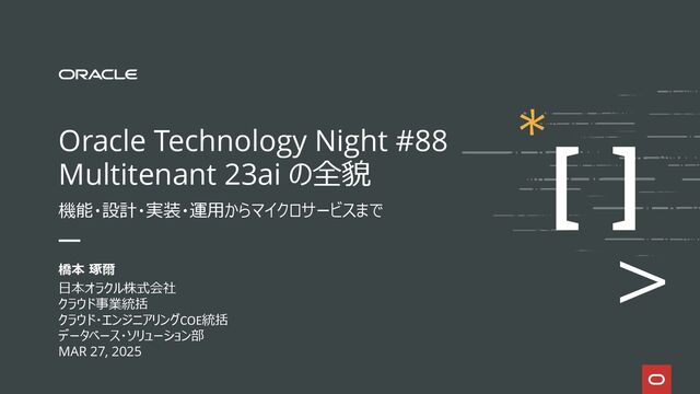 pdb1926 refresh 2025-03-06T05:01:04.686945-05:00 Applying media recovery for pdb-0 from SCN 3622431 to SCN 3798457 Remote log information: count-3 thr-1,seq-12,logfile-/u01/app/oracle/fast_recovery_area/ORCL19NC/archivelog/2025_03_05/o1_mf_1_12_mwht3kf7_.arc,los-3657086,nxs-3718676,maxblks-344431 thr-1,seq-11,logfile-/u01/app/oracle/fast_recovery_area/ORCL19NC/archivelog/2025_03_04/o1_mf_1_11_mwhd1tt5_.arc,los-2200703,nxs-3657086,maxblks-363722 thr-1,seq-13,logfile-/u01/app/oracle/fast_recovery_area/ORCL19NC/foreign_archivelog/orcl19nc/2025_03_06/o1_mf_1_13_mwlwlz58_.arc,los-3718676,nxs- 18446744073709551615,maxblks-329761 PDB1926(5):Media Recovery Start 2025-03-06T05:01:04.690630-05:00 PDB1926(5):Serial Media Recovery started PDB1926(5):max_pdb is 7 2025-03-06T05:01:04.743611-05:00 PDB1926(5):Media Recovery Log /u01/app/oracle/fast_recovery_area/ORCL19NC/archivelog/2025_03_04/o1_mf_1_11_mwhd1tt5_.arc PDB1926(5):Resize operation completed for file# 22, fname /u01/app/oracle/oradata/ORCL19C/datafileo1_mf_sysaux_mwfx062s_.dbf, old size 942080K, new size 952320K 2025-03-06T05:01:06.503541-05:00 PDB1926(5):Resize operation completed for file# 22, fname /u01/app/oracle/oradata/ORCL19C/datafileo1_mf_sysaux_mwfx062s_.dbf, old size 952320K, new size 962560K 2025-03-06T05:01:06.711159-05:00 ・・・・・・・・・・ (一部省略) PDB1926(5):Resize operation completed for file# 22, fname /u01/app/oracle/oradata/ORCL19C/datafileo1_mf_sysaux_mwfx062s_.dbf, old size 1003520K, new size 1013760K 2025-03-06T05:01:17.810144-05:00 PDB1926(5):Resize operation completed for file# 22, fname /u01/app/oracle/oradata/ORCL19C/datafileo1_mf_sysaux_mwfx062s_.dbf, old size 1013760K, new size 1024000K 2025-03-06T05:01:19.611674-05:00 PDB1926(5):Incomplete Recovery applied until change 3798457 time 03/06/2025 05:01:00 2025-03-06T05:01:19.617495-05:00 PDB1926(5):Media Recovery Complete (orcl19c) 42 Copyright © 2025, Oracle and/or its affiliates ※ 検証環境では特に負荷をかけずに実行