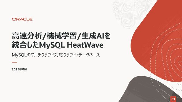 affiliates クエリ処理性能⽐較(500TB TPC-H) 0.6 10.8 9.1 21.1 0 5 10 15 20 25 $1,742,036 $2,300,160 $1,544,268 $1,446,900 $0 $500,000 $1,000,000 $1,500,000 $2,000,000 $2,500,000 総クエリ実⾏時間 年間コスト MySQL HeatWave Lakehouse Snowflake on AWS Amazon Redshift Google BigQuery MySQL HeatWave Lakehouse Snowflake on AWS Amazon Redshift Google BigQuery 18 倍 低速 0.9 倍 0.8 倍 15 倍 低速 35 倍 低速 1.3 倍 ⾼コスト https://www.oracle.com/mysql/heatwave/performance より作成 MySQL HeatWave Lakehouse:512 nodes, Annual Flex, Snowflake onAWS :4X-Large cluster,Standard Edition, Amazon Redshift:20-ra3,16xlarge, 1年間先払い, Google BigQuery:6400 slots, 1年間 リザーブド Hour