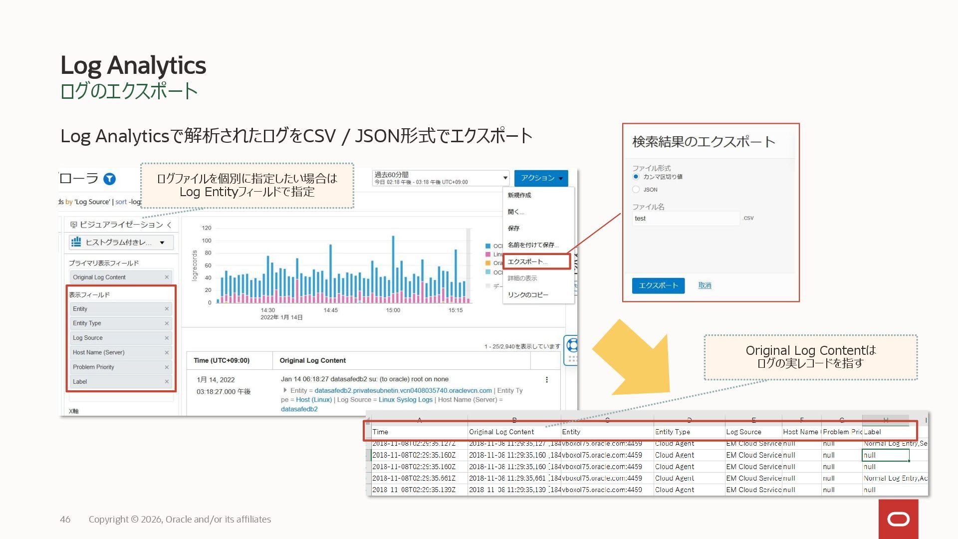 Entityフィールドで指定 Original Log Contentは ログの実レコードを指す Copyright © 2026, Oracle and/or its affiliates