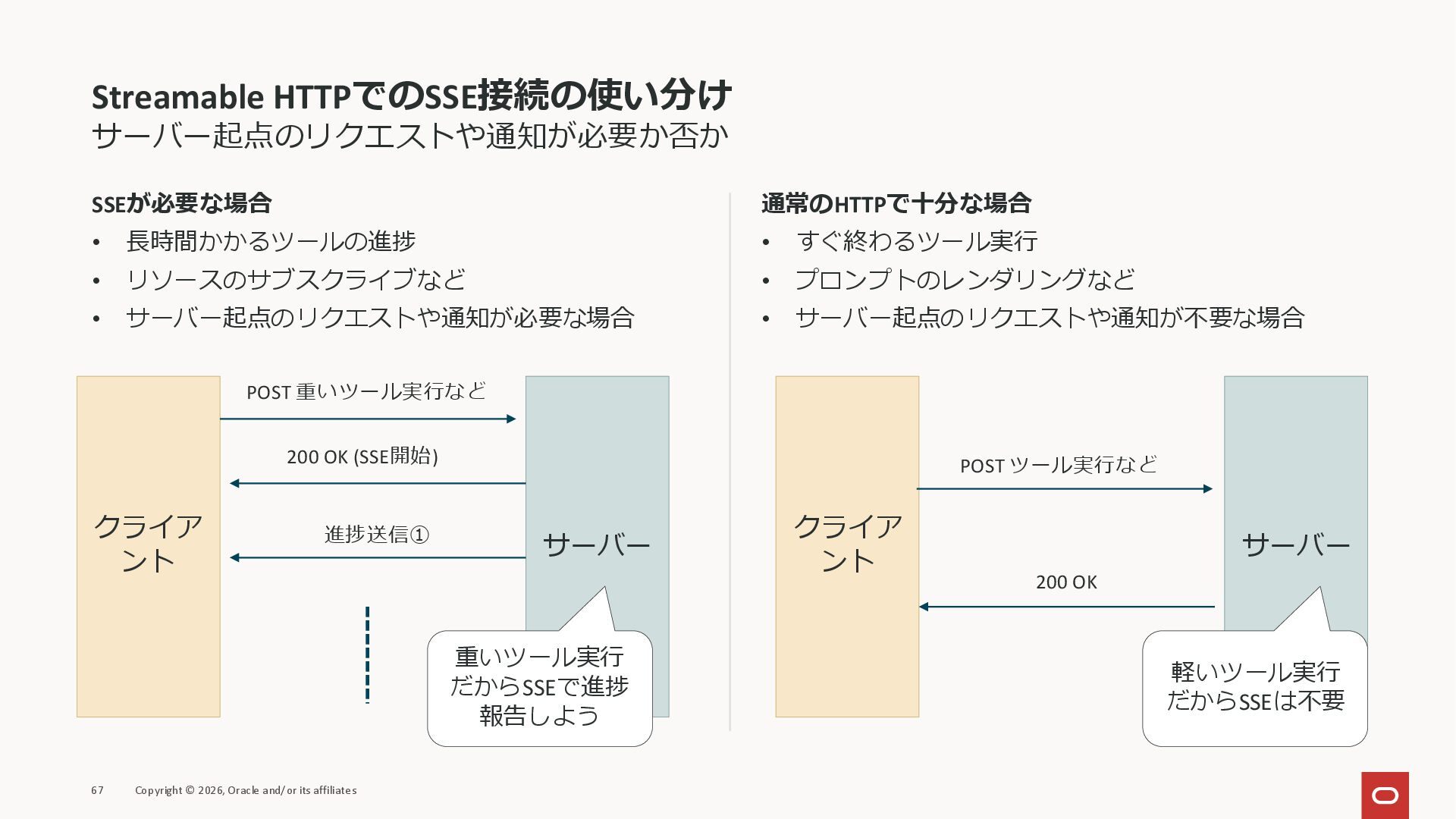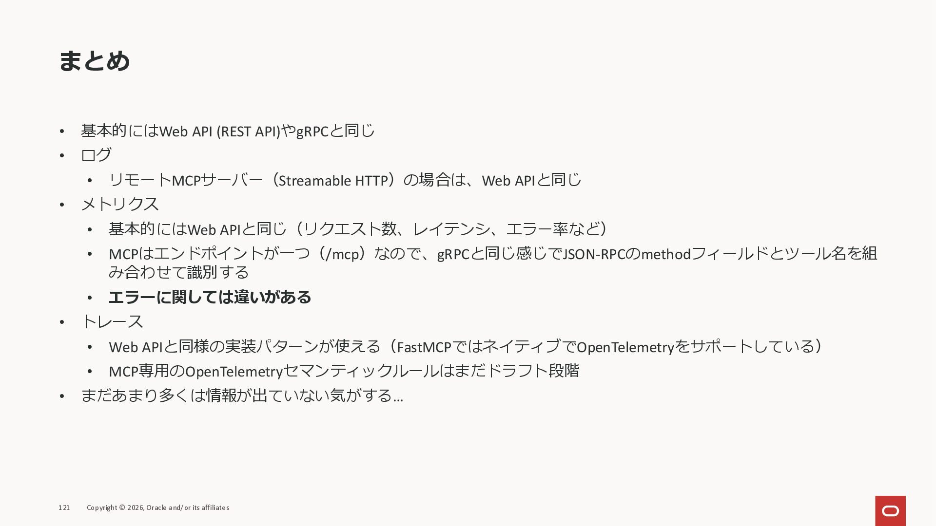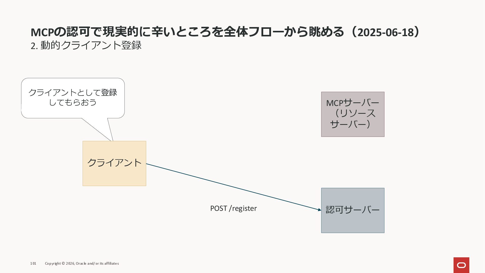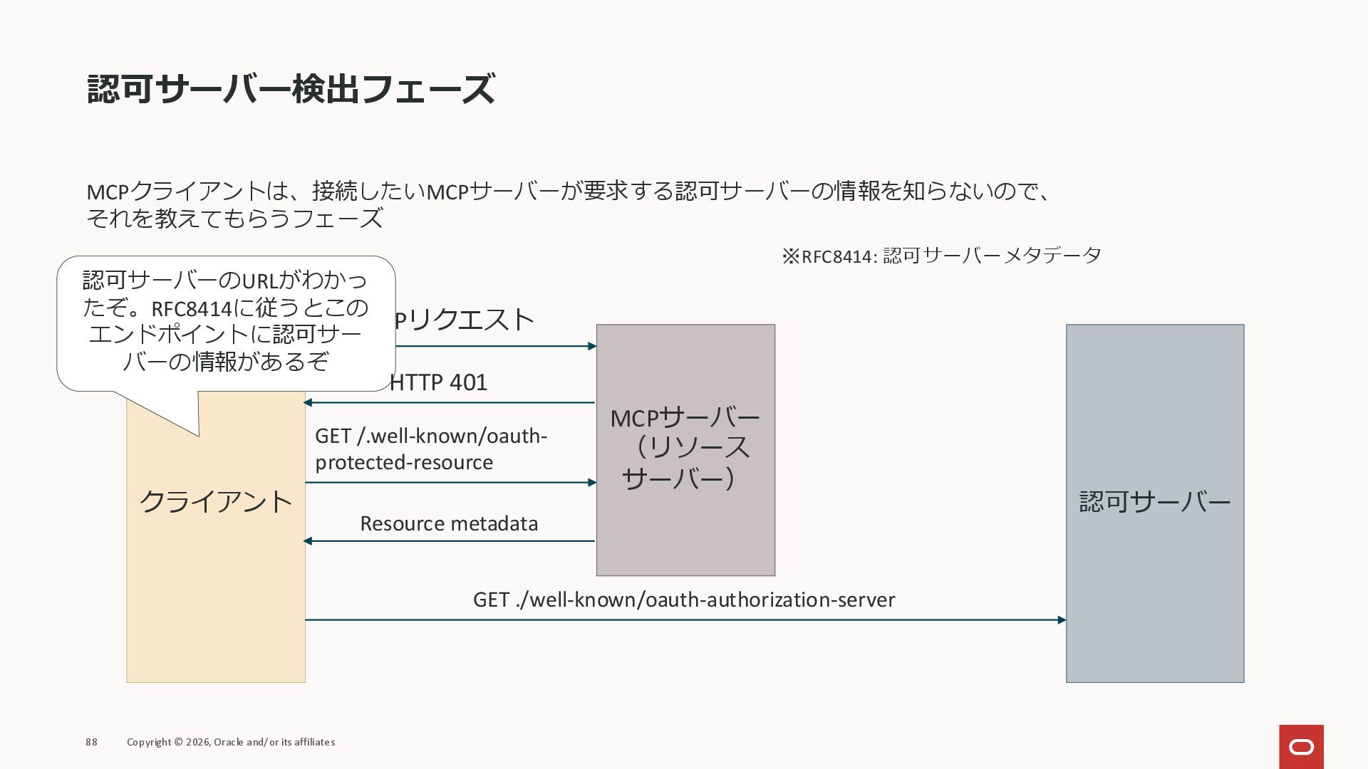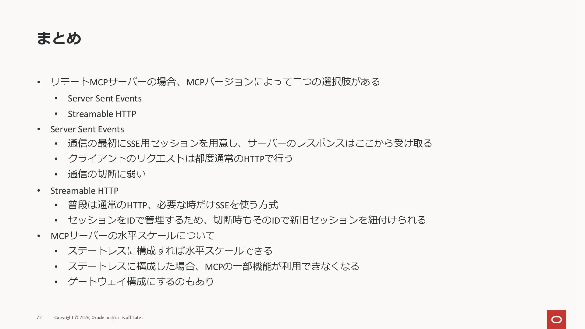 affiliates MCPクライアント MCPサーバー JSON-RPC 2.0 MCPの仕様 (メソッドなど) JSON-RPC 2.0 MCPの仕様 (メソッドなど) *JSON-RPC 2.0では、jsonrpc, id, method, paramsなどのフィールドが定義されているが、その中に何がくるのかまでは定 義されていない MCPは、その中(例えばmethodの中)にどういう名前が入るかなどを定義している *https://www.jsonrpc.org/specification