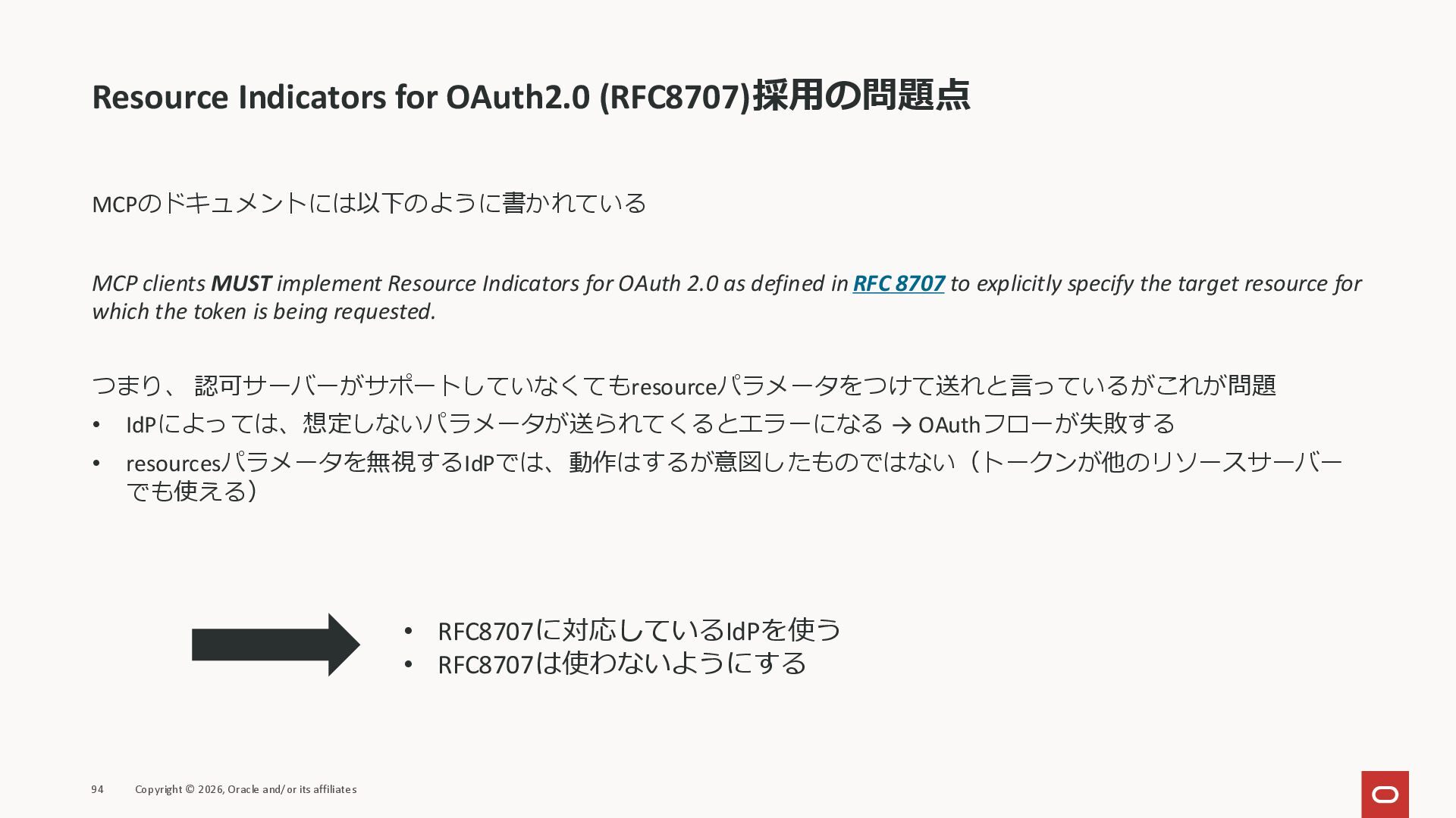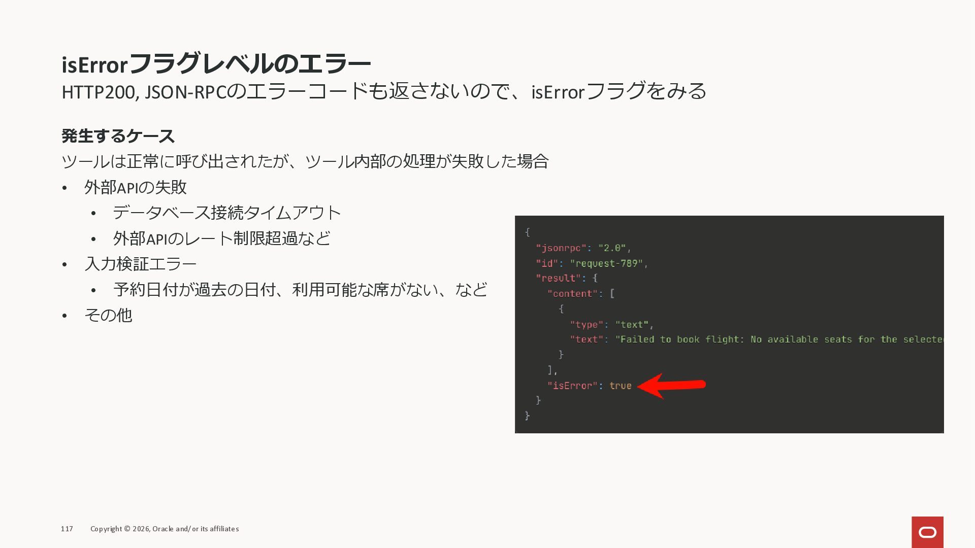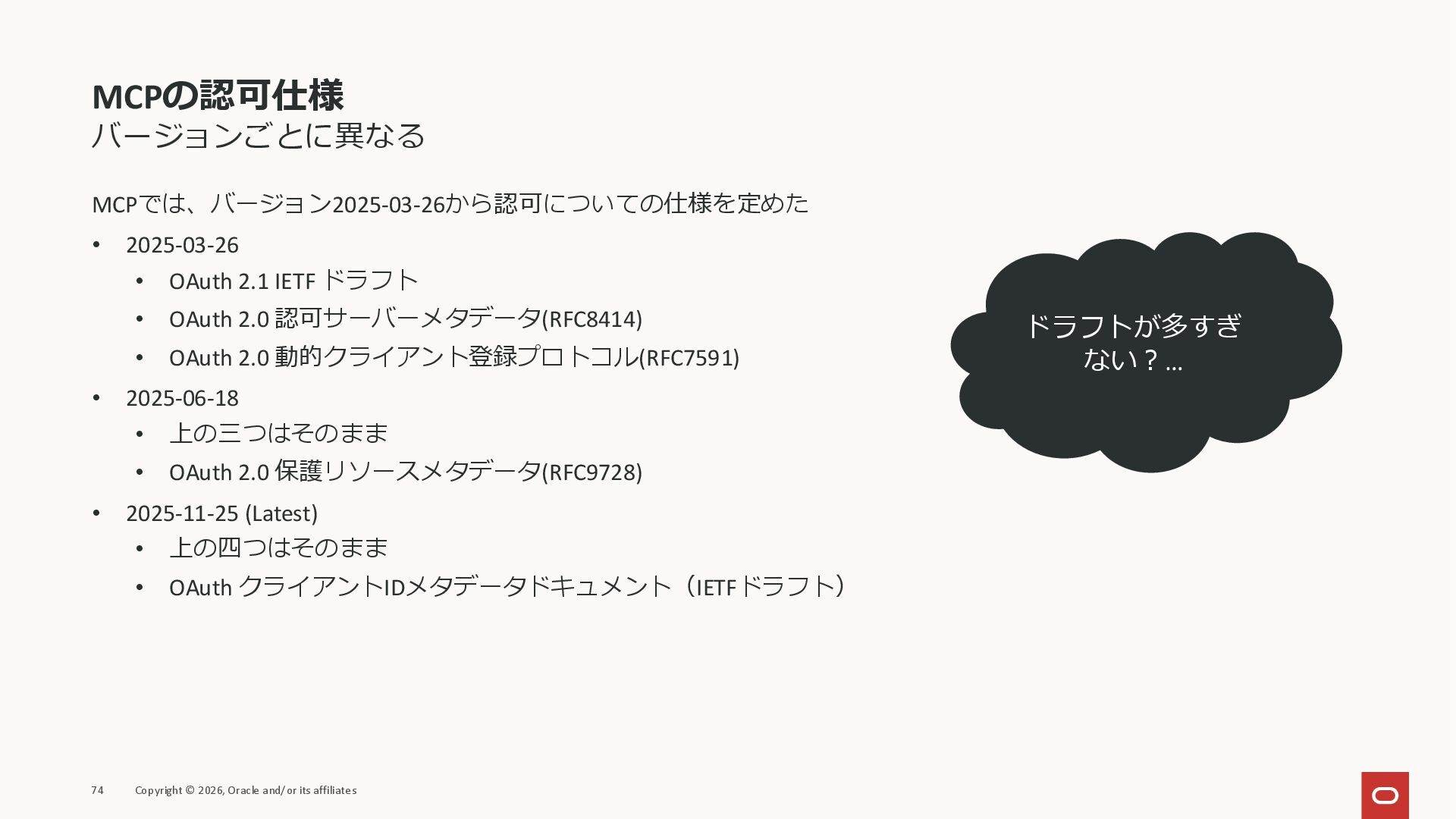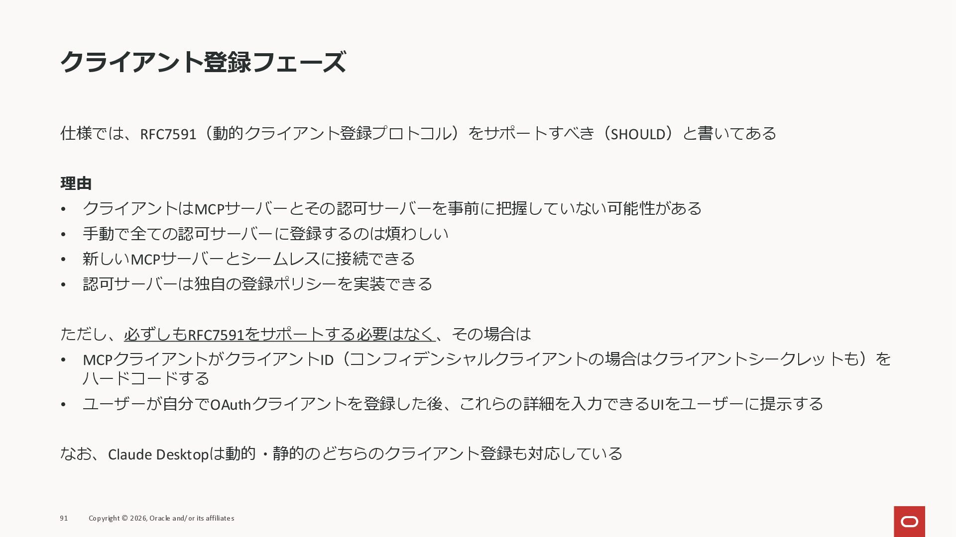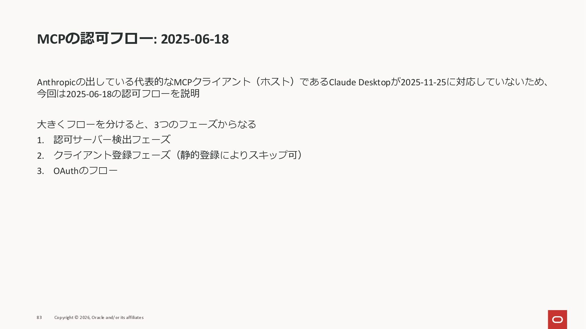 affiliates MCPクライアント MCPサーバー JSON-RPC 2.0 MCPの仕様 (メソッドなど) JSON-RPC 2.0 MCPの仕様 (メソッドなど) *JSON-RPC 2.0では、jsonrpc, id, method, paramsなどのフィールドが定義されているが、その中に何がくるのかまでは定 義されていない MCPは、その中(例えばmethodの中)にどういう名前が入るかなどを定義している *https://www.jsonrpc.org/specification