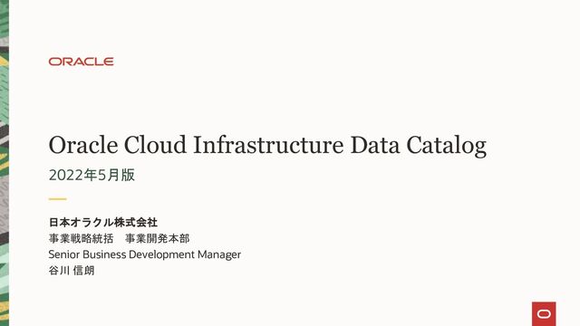 Oracle Cloud Infrastructure Data Catalog 2022年5月版 日本オラクル株式会社 事業戦略統括 事業開発本部 Senior