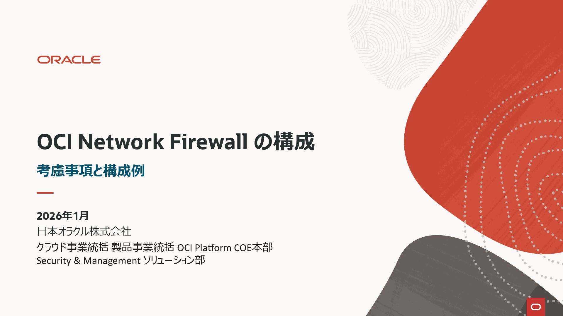 OCI Network Firewall の構成 考慮事項と構成例 2026年1月 日本オラクル株式会社 クラウド事業統括 製品事業統括 OCI