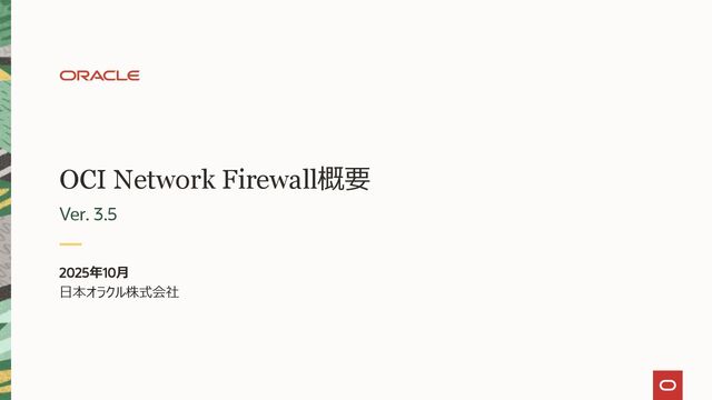 OCI Network Firewall概要 2025年10月 日本オラクル株式会社 Ver. 3.5