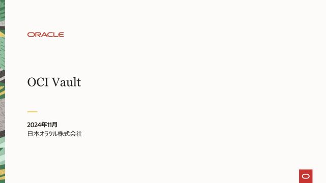 られている • コンプライアンス要件上、暗号鍵はHSMに格納 することを推奨事項として明記されている • HSMの利用の場合、FIPS140-2 Level3準拠することが 金融や公共・ヘルスケアといったシステムではデファクトスタ ンダートとして求められる • データの暗号化やデジタル署名のクラウド基盤 • バッチやアプリケーション内でデータベースの ユーザー名・パスワード、接続文字列といった 接続情報を直接ハードコーディングすることを 禁止したい • クラウドリソースのユーザー名やパスワード、 SSHキーなどをメールやチャットツールなどで 気軽に共有してしまう運用を辞めたい • Terraformやコンテナ等のインフラの自動化管理ジョブの中 にできる限り機微な情報を含めたくない • だれが、いつ、どこからシークレットにアクセスしたのか、特定す るための監視手段が必要 • シークレットの有効期限を設定したい Copyright © 2024, Oracle and/or its affiliates