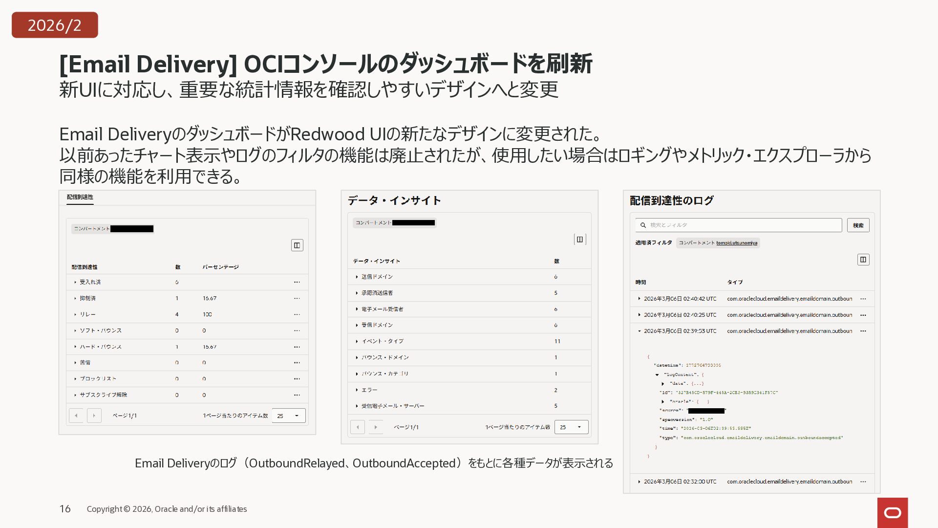 15. [Email Delivery] OCIコンソールのダッシュボードを刷新 16 Copyright © 2026, Oracle and/or its