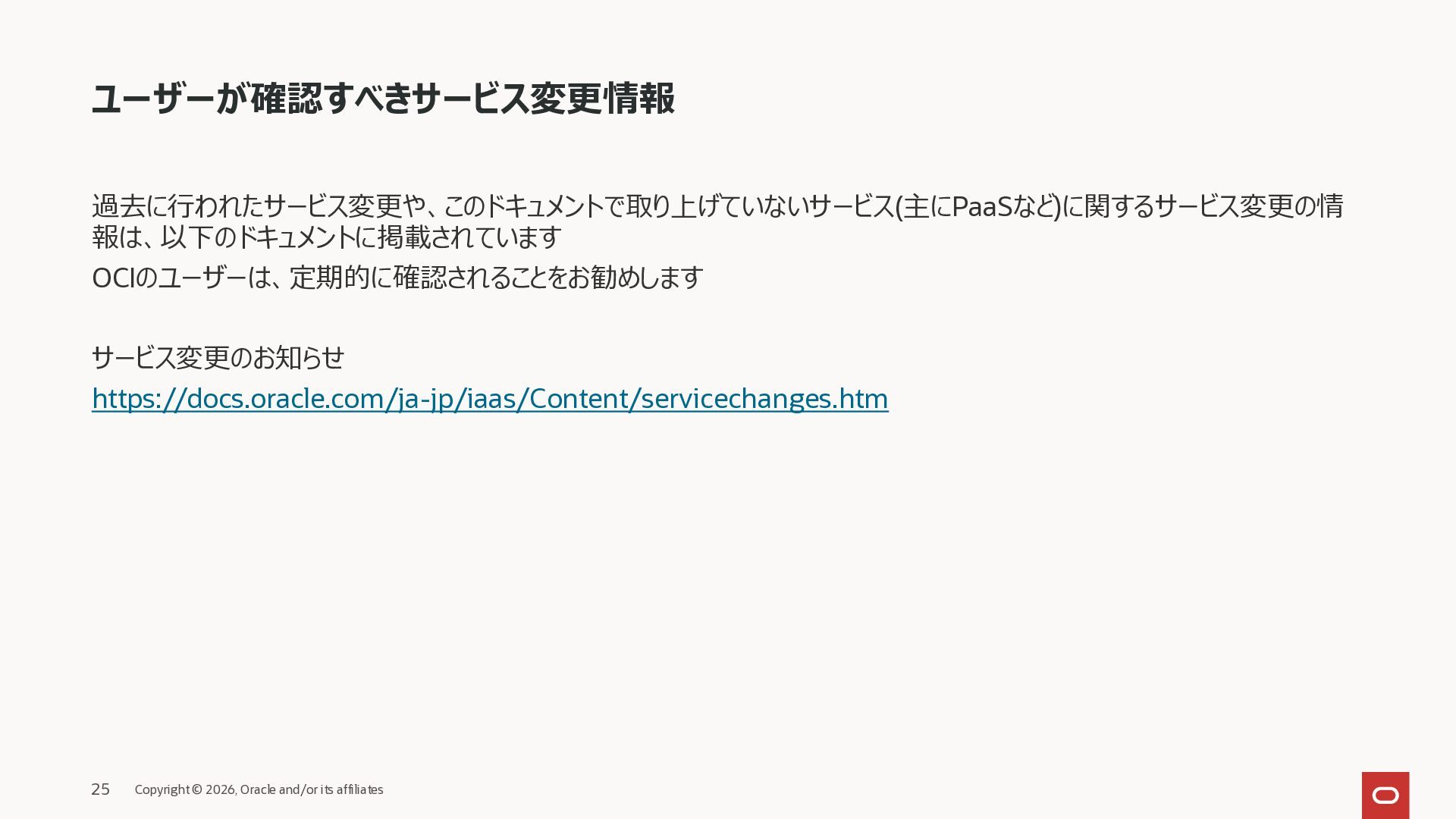 22. Oracle Cloud Infrastructure 主要情報一覧 28 Copyright © 2026, Oracle and/or