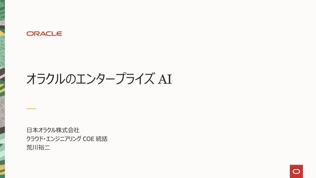2024 Oracle and/or its affiliates. All rights reserved. Llama 3.2 Vision Explain the diagram The diagram illustrates the integration of CRM applications with Oracle Commerce Cloud and Dynamics 365, highlighting the flow of data between these systems. The diagram is divided into three main sections: CRM Applications, Tech Support Channels, and OCI Region. CRM Applications • Salesforce • Oracle Commerce Cloud • Dynamics 365 Tech Support Channels • Portal • Email • WhatsApp OCI Region • Integration Flow: • CRM adapter • Native call to Object Storage • Native call to Gen AI Service • CRM adapter • Native call to Object Storage • Native call to Function • Native call to Object Storage • CRM adapter • Business exceptions: • Exception handling process automation • OCI Object Storage • OCI Generative AI • OCI Functions • OCI Gen AI RAG Agent The diagram shows that CRM applications can integrate with Oracle Commerce Cloud and Dynamics 365 through various tech support channels, such as portal, email, and WhatsApp. The integration flow involves using a CRM adapter to connect to native calls to object storage, Gen AI service, and function, which are then processed by the CRM adapter. The diagram also highlights the exception handling process automation, which is triggered by business exceptions. Additionally, the diagram shows that OCI object storage, generative AI, functions, and Gen AI RAG agent are used in the integration flow. Overall, the diagram provides a clear overview of how CRM applications can be integrated with Oracle Commerce Cloud and Dynamics 365, and how data can be processed and stored using various OCI services. • 画像のキャプション生成 • 画像の説明文の生成 • 画像中のテキストの抽出(OCR) • 画像に対するQA テキストと画像のマルチモーダルモデル テキスト・画像のマルチモーダルなタスク例 ※ テキスト+画像:英語のみをサポート ※ テキストのみ:英語, ドイツ語, フランス語, イタリア語, ポルトガル語,ヒンディー語, スペイン語, タイ語 をサポート ※ テキストのみのタスクについては、Llama 3.1 70B / 8B と同等の能力 ※ 11B は、専用AIクラスタのみで提供。90B は、オンデマンドと専用AIクラスタの両方で提供。 Tips RAGにおいて、DBに画像の説明文を登録しておくことで、質問に関連 した図表を含む画像を見つけて提示したり、さらにその画像に対して問 い合わせ文でQAすることで回答の質を高めるようなユースケースもあり ます。 生成された 画像の説明 New