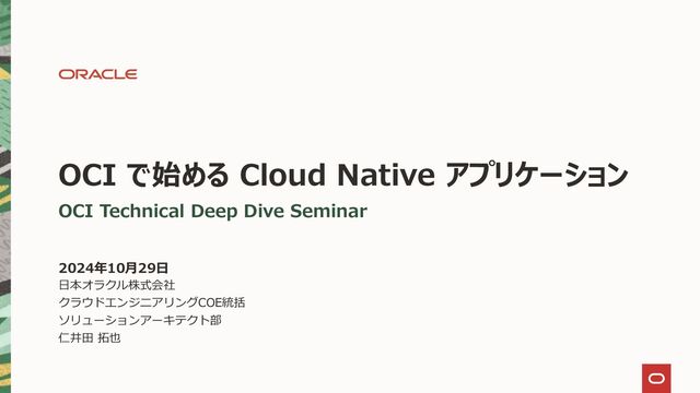 Oracle Cloud Infrastructure(OCI) Technical Deep Dive(2024年10月29日開催)