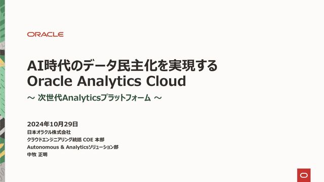 AI時代におけるデータ民主化を推進するツールとして、Oracle Analytics Cloud(OAC)の活用方法を紹介しました。