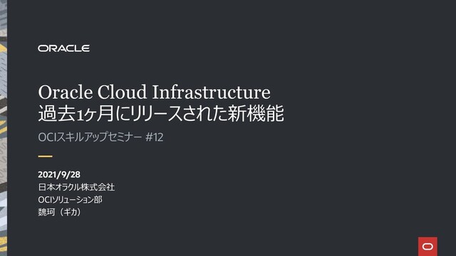 Oracle Cloud Infrastructure 過去1ヶ月にリリースされた新機能 OCIスキルアップセミナー #12 2021/9/28 日本オラクル株式会社 OCIソリューション部 魏珂(ギカ)