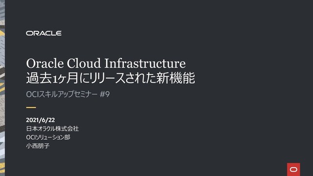 Oracle Cloud Infrastructure 過去1ヶ月にリリースされた新機能 OCIスキルアップセミナー #9 2021/6/22 日本オラクル株式会社 OCIソリューション部 小西朋子