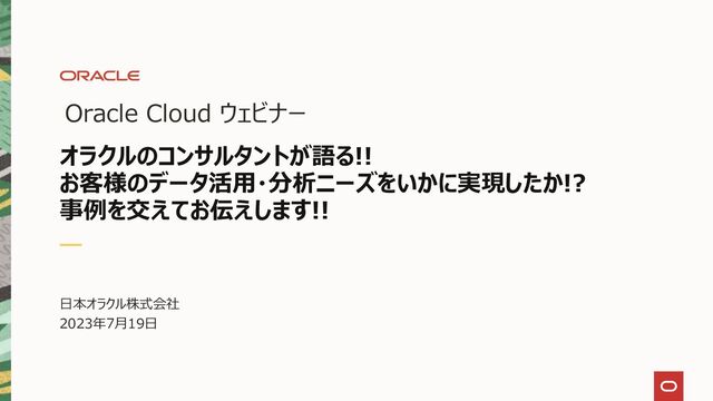 Copyright © 2023, Oracle and/or its affiliates データ活用・分析のクイックな立ち上げを支援するサービス Multi-cloud Lakehouse Design & Setup Service マルチクラウド環境におけるデータ プラットフォームとして複数のOCI クラウドサービスをデザイン&セッ トアップ サービス料金:2,730,000円(税抜き)~ 標準期間:2か月~ Data Driven DX Startup Service データ利活用のためのデータプ ラットフォーム構築に向けた初期 構想の作成と、クイックウィンを目 的としたプロトタイプの作成 サービス料金:8,000,000円(税抜き)~ 標準期間:3か月~ Copyright © 2023, Oracle and/or its affiliates 34