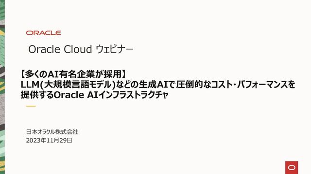 【Oracle Cloud ウェビナー】【多くのAI有名企業が採用】 LLM(大規模言語モデル)などの生成AIで圧倒的なコスト・パフォーマンスを提供するOracle AIインフラストラクチャ