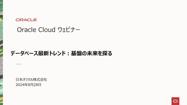 APIを通じ伝票を送る - 販売/出荷/請求 SQLデータベースの利点 表形式のイメージにして保存 → 集計が楽 膨大な量・種類のデータを組み合せ可能 ご参考) ドキュメント型データベース Copyright © 2024, Oracle and/or its affiliates 20 SQL データベース JSON ドキュメント型 データベース 日本 太郎 様 No. 378-004 Unit Item No 1 MyTechマウス 1 1 CCマウスパッド 2 3 合計 ¥1,300.- 月末25日払い 2024/8/28 {“key” : “378-004”, “購入者” : “日本 太郎”, “商品” : [{“Item” : “MyTechマウス”, “Unit”: 1}, {“Item” : “CCマウスパッド”, “Unit”: 1} ] “購入日” : “2024/8/28”, “合計” : 1300, “支払” : “月末25日払い” } 社員名 会社名 鍵 青山 一二三 株式会社オラクル 3276A 携帯電話 社員名 鍵 090-7531-1357 青山 一二三 5342 : 赤川 雄山 5347 SELECT 会社名、社員名 FROM 顧客、営業 WHERE 会社名=“株式会社オラクル” AND 顧客.営業鍵 = 営業.鍵; 販売 出荷 請求
