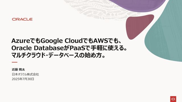 回答 110スライド目にて、APサーバとOCIでは別サブネットでの記載となっておりましたが、AWSに配 置したAPサーバと同じサブネットでは利用できない認識であっておりますでしょうか? はい。ご認識の通りです。 AWSでは、DB@AWSは専用のプライベート・ネットワーク(ODB Network)に置かれます。APの VPCからPeeringして接続します。 2 16スライド目にて、ネットワークのパフォーマンスについては、同じデータセンター内に配置されて おり低遅延とのことですが、利用可能なAWSのAZに制限はない認識であっておりますでしょう か? AWSのAmazon RDS(Oracle)とパフォーマンスを比較した情報(同等と証明する資料など) はありませんでしょうか? AWSについては、各リージョンにつき、最初は2AZで提供される予定です。 そのため、DB@AWSが提供されていないAZもあります。 また、パフォーマンス比較ですが、昨年のOracle Cloud Worldのセッションで詳しい比較があります。 (Why Oracle Autonomous Database Is Superior, Faster, and Cheaper Than DBs in AWS [LRN3012]) また、いくつかの記事がWebで公開されています。 ・https://thecuberesearch.com/cloud-database-migration-costs-aws-rds-oracle- vs-oracle-atp/ ・ https://static.rainfocus.com/oracle/ocw24/sess/1716494556426001f6Ra/finals essionfile/OCW- Why%20OCI%20ADB%20superior%20faster%20and%20cheaper_172591054 1091001e9jw.pdf 323スライド目にて、異なるリージョンで利用できるとのことでしたが、AWSの東京リージョンと大 阪リージョンで、災対構成は可能なのでしょうか? はい、以下はDB@Azureの構成例ですが、DB@AWSにおきましても、東京/大阪リージョンで提供 された際には、同期設定(Data Guard)が可能になる予定です。 https://docs.oracle.com/ja/solutions/exadb-dr-on-db-azure/index.html 4'@AWSについて、ODB Peeringを介して接続するとありますが、VPCとDBサービス間の NW帯域はどれだけ提供されるでしょうか? VPCとDB間のネットワーク帯域は公開されていませんが、同じDC内で通常のネットワーク同様に接続 されています。 実際に使用される場合には、アプリケーション側で使用されるネットワーク・インターフェースの帯域に依 存すると思われます。 5 Oracle Database@Azure, AWSに関連して、OCIのアカウントとのリンクが必要な理解で すが、これは顧客がすでに契約をしているOCIアカウントが利用できると思っていいですか? (以前は、既存のOCIアカウントではなく、新規のOCIアカウントが必要になった理解です) はい。すでに契約いただいているOCIのアカウントもリンク可能です。 Q&A