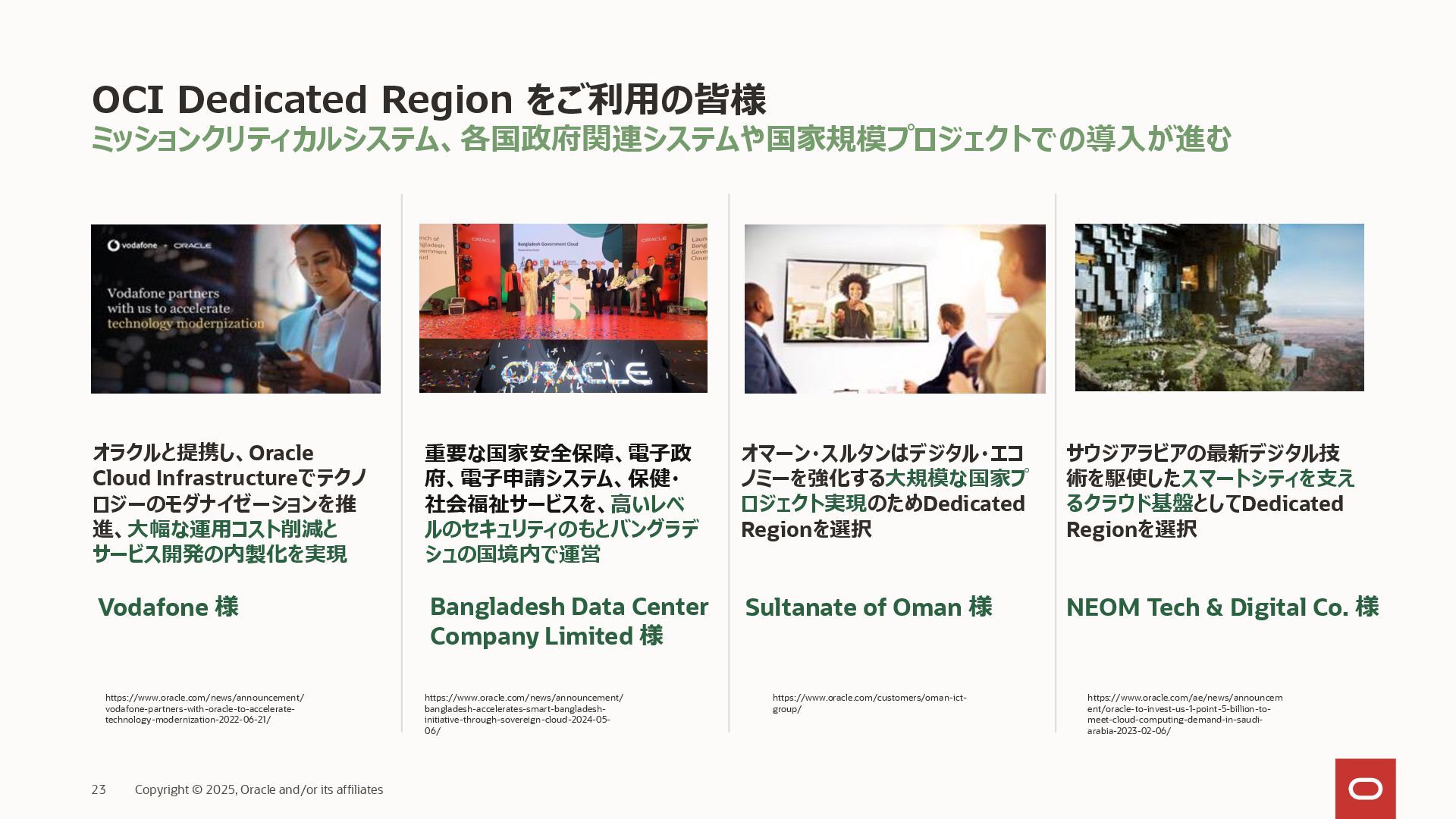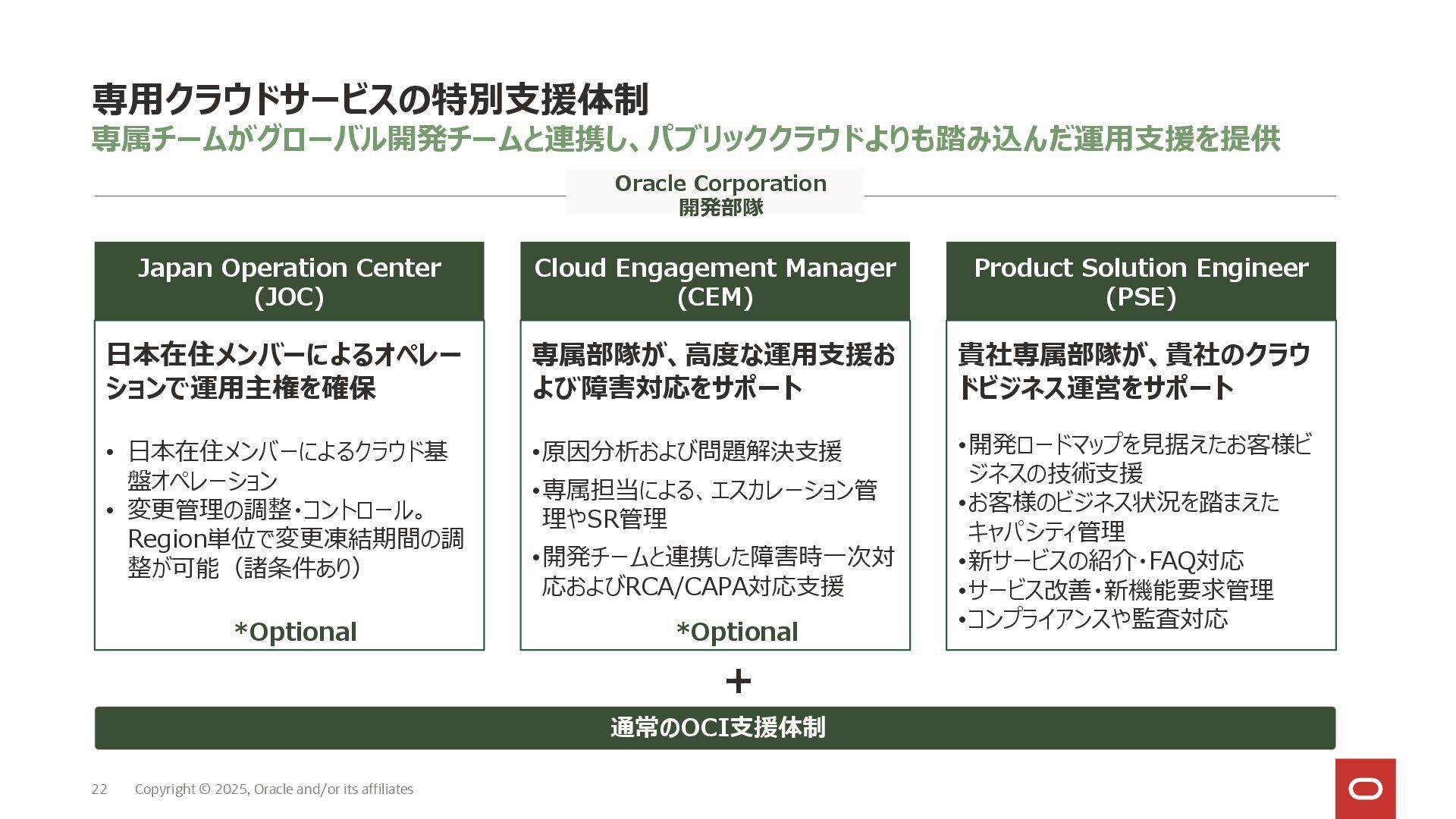 affiliates Compute Storage Networking Oracle Databases Open Source Databases Operating Systems, Native VMware Developer Services Containers and Functions Integration Data Lake Machine Learning and AI Analytics and BI Security | Observability | Compliance | Messaging | Governance Oracle Applications Industry | ERP | EPM | SCM | HCM | ACX Custom Applications Polyglot | Traditional | Cloud Native ISV Applications Hundreds to choose from 150+ public cloud services to support your workloads 10,000 OCI developers 3,000 field cloud engineers 50+ Oracle Fusion and Industry applications
