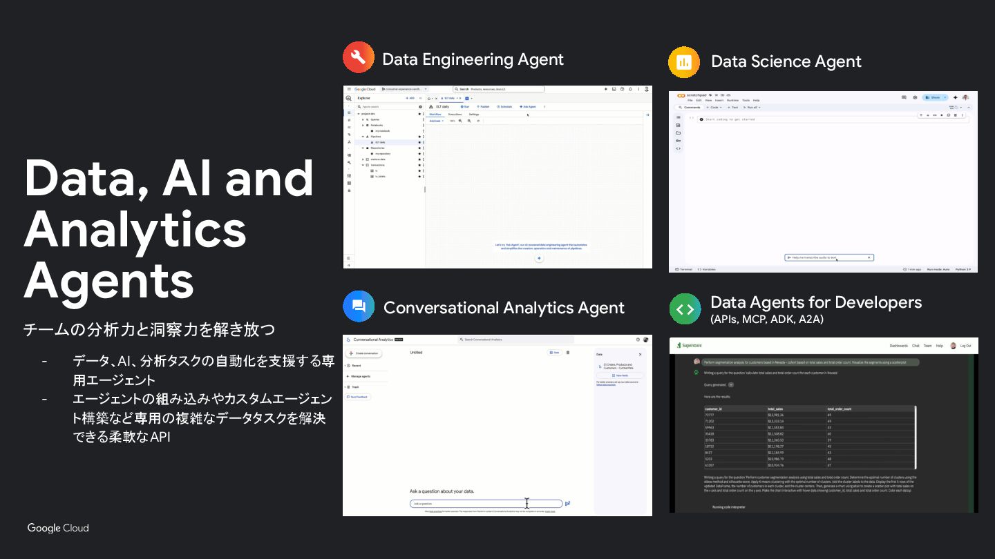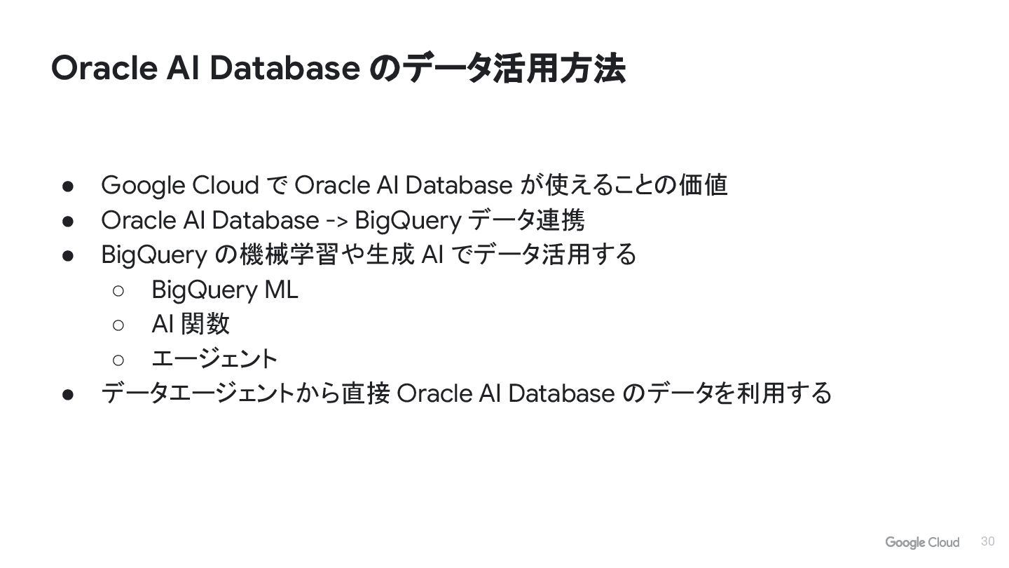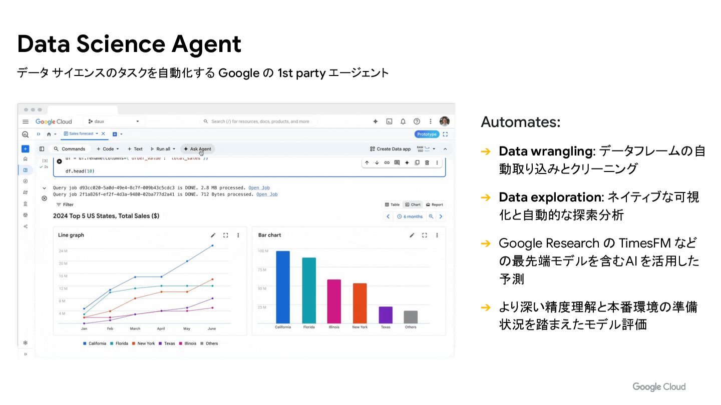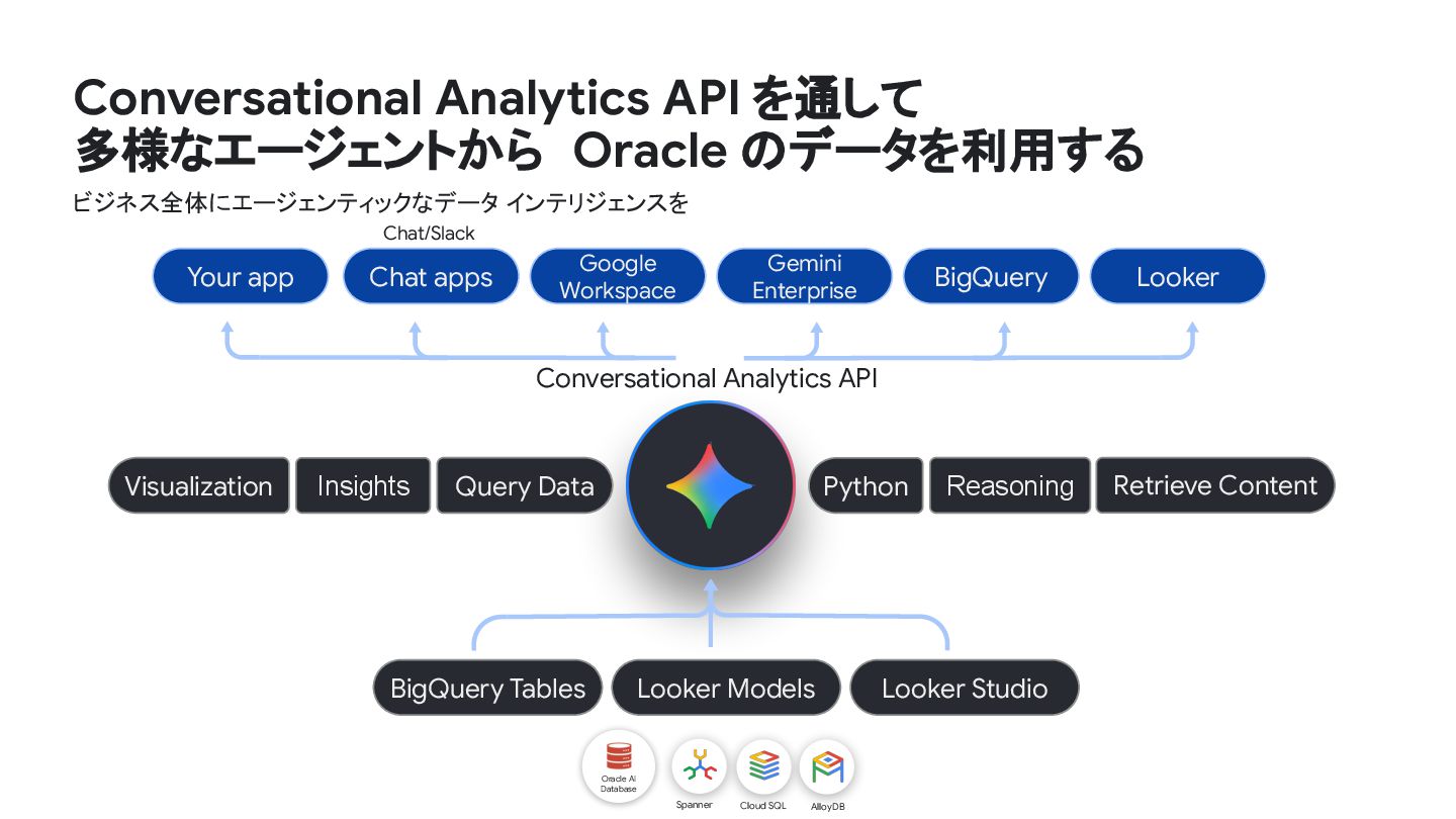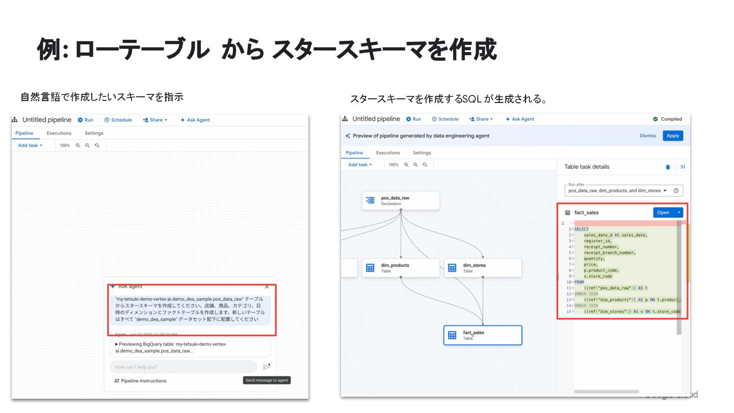 関心のある「貢献」セグメントを素早く特定 「なぜ」というビジネス上の重要な質問 に素早く 答える • なぜ先月売上が減少したのか? • どの地域とチャネルでマーケティングキャ ンペーンが最も効果的だったか? Jan March May Sales この急増を引き起こした要 因は何? データのどのセグメントか ら調査を始めるべきか? 指標が変動した理由を理解する SELECT contributors, metric_test, metric_control, difference, relative_difference, unexpected_difference, relative_unexpected_difference, apriori_support, contribution FROM ML.GET_INSIGHTS( MODEL `bqml_tutorial.iowa_liquor_sales_sum_model`);