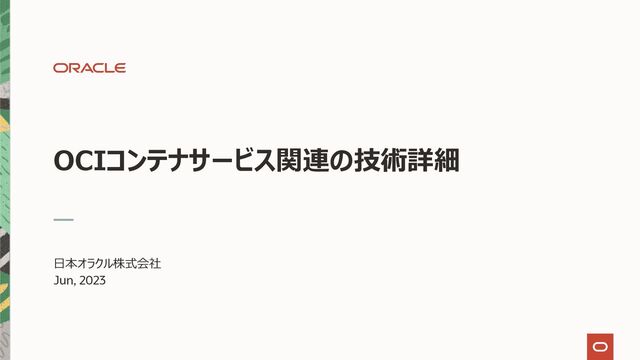OCIコンテナサービス関連の技術詳細 ⽇本オラクル株式会社 Jun, 2023