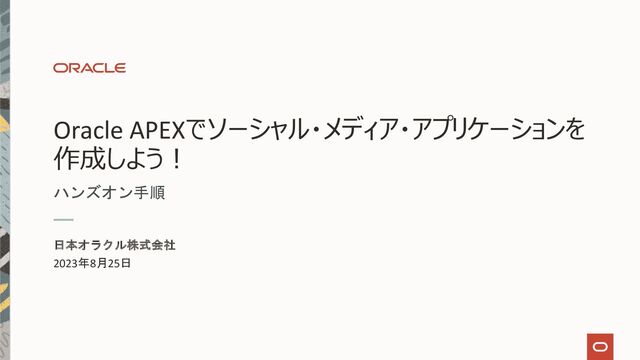 本ハンズオンはOracle LiveLabsに掲載されているBuild a Social Media App Using Oracle APEX!のハンズオンを日本語に翻訳したものです。