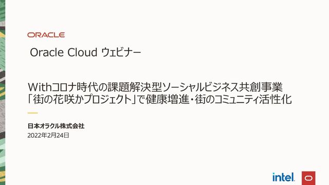 2022年2月24日開催されたOracle Cloud WebinarのDXシリーズの資料です。 Withコロナ時代の課題解決型ソーシャルビジネス共創事業「街の花咲かプロジェクト」で健康増進・街のコミュニティ活性化