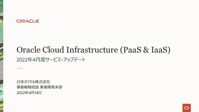 2022年4月のOracle Cloud Infrastructure サービス・アップデートです。