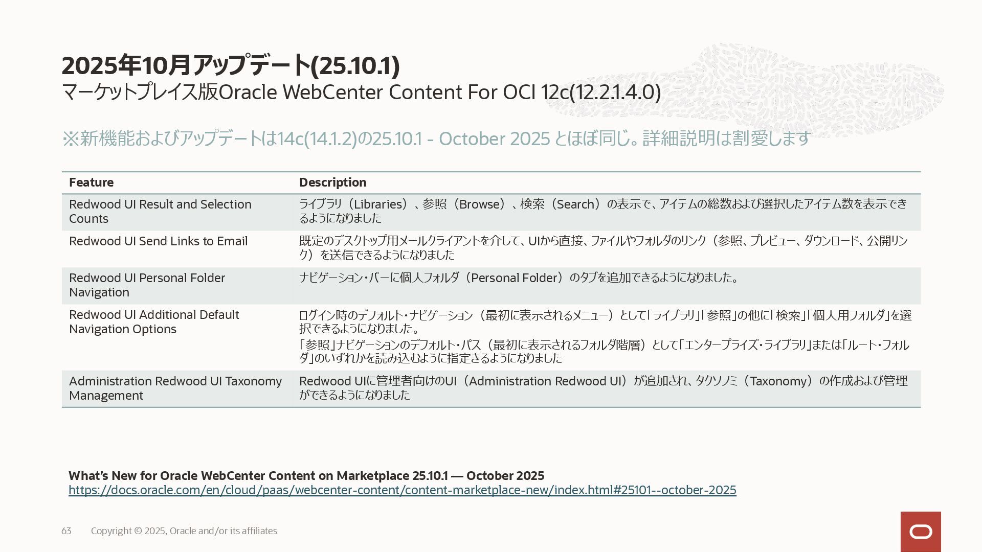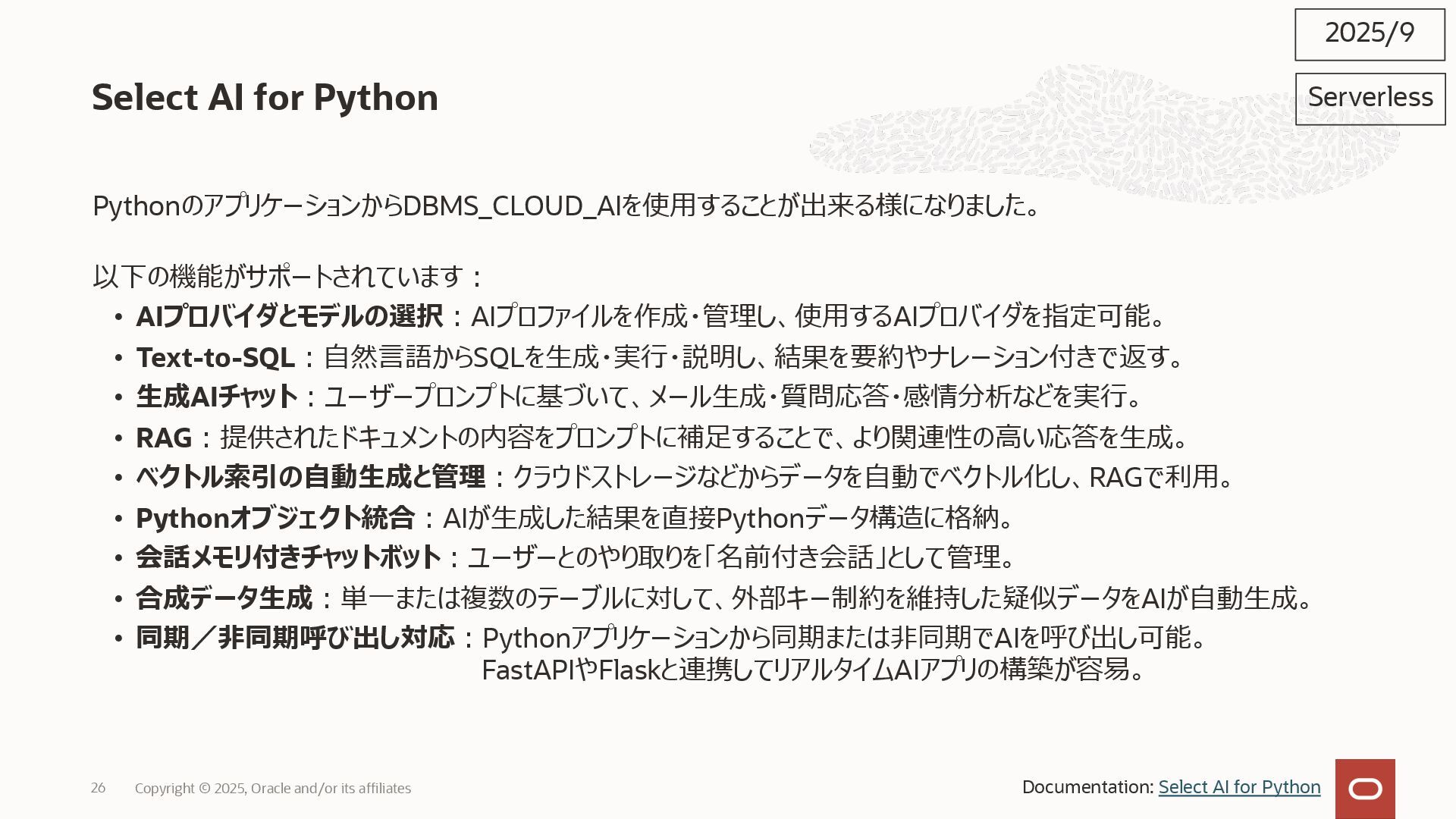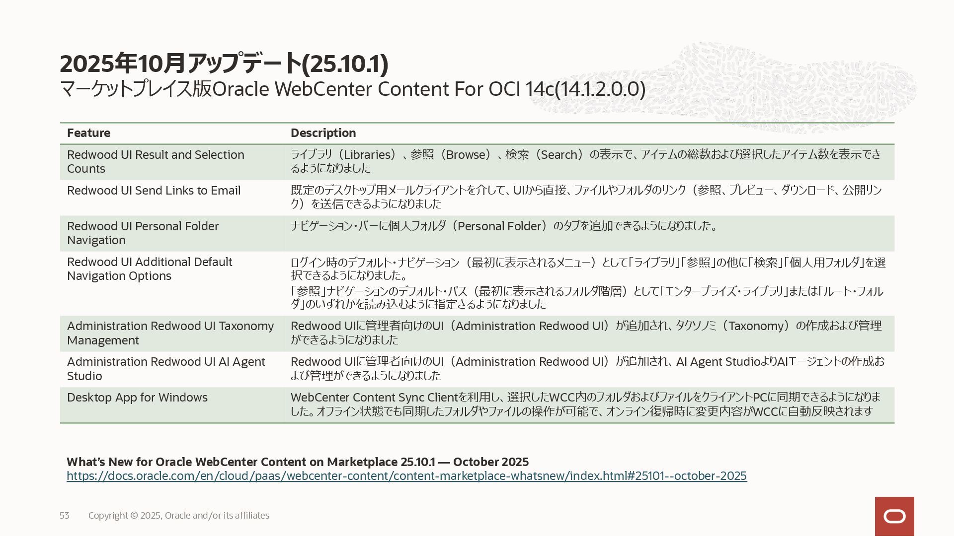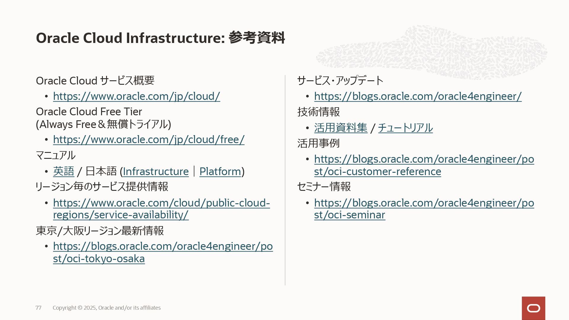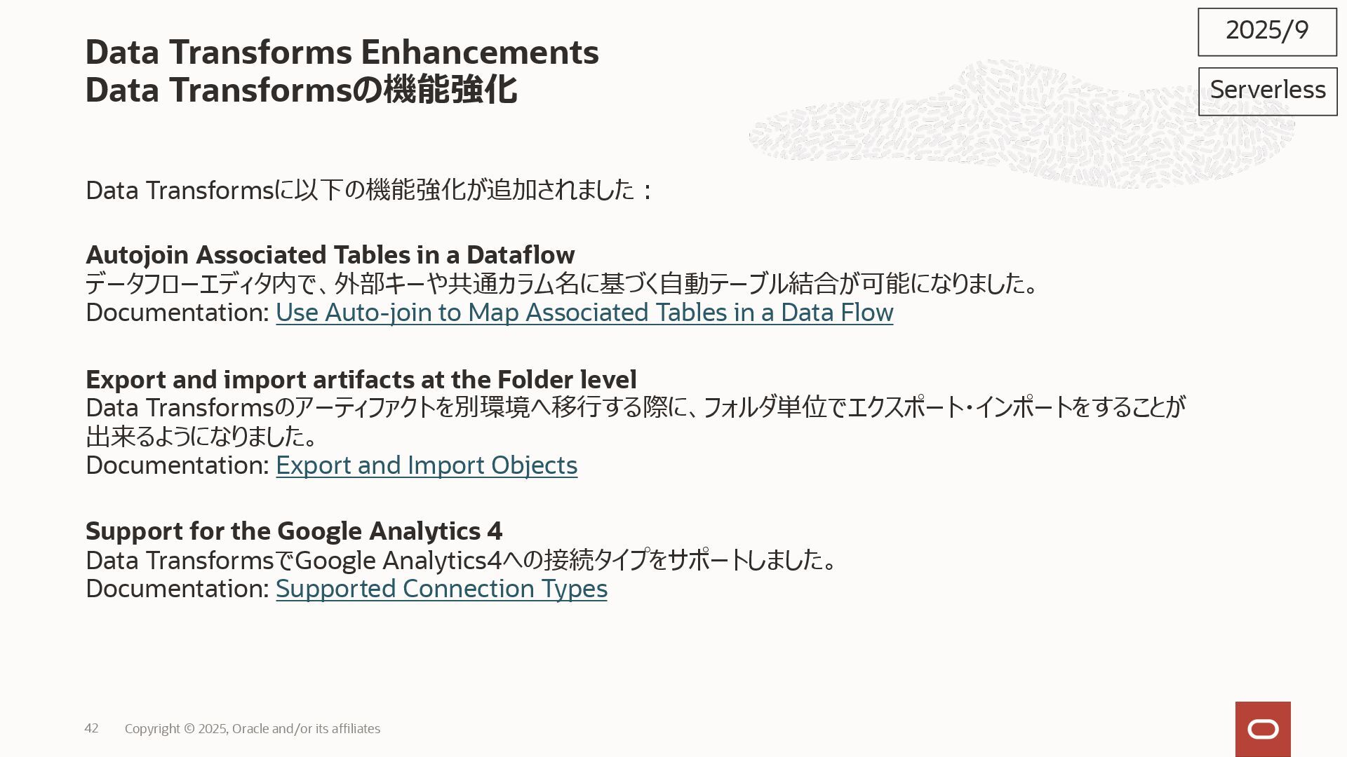 2025, Oracle and/or its affiliates 35 DECLARE status CLOB; BEGIN DBMS_DATA_ACCESS.CREATE_URL( schema_name => 'SCOTT', schema_object_name => 'TREE_DATA', password => passwd, max_failed_access_attempts => 15, result => status); dbms_output.put_line(status); END; / 2025/9 Serverless Documentation: Use Table Hyperlinks for Read Only Data Access on Autonomous Database
